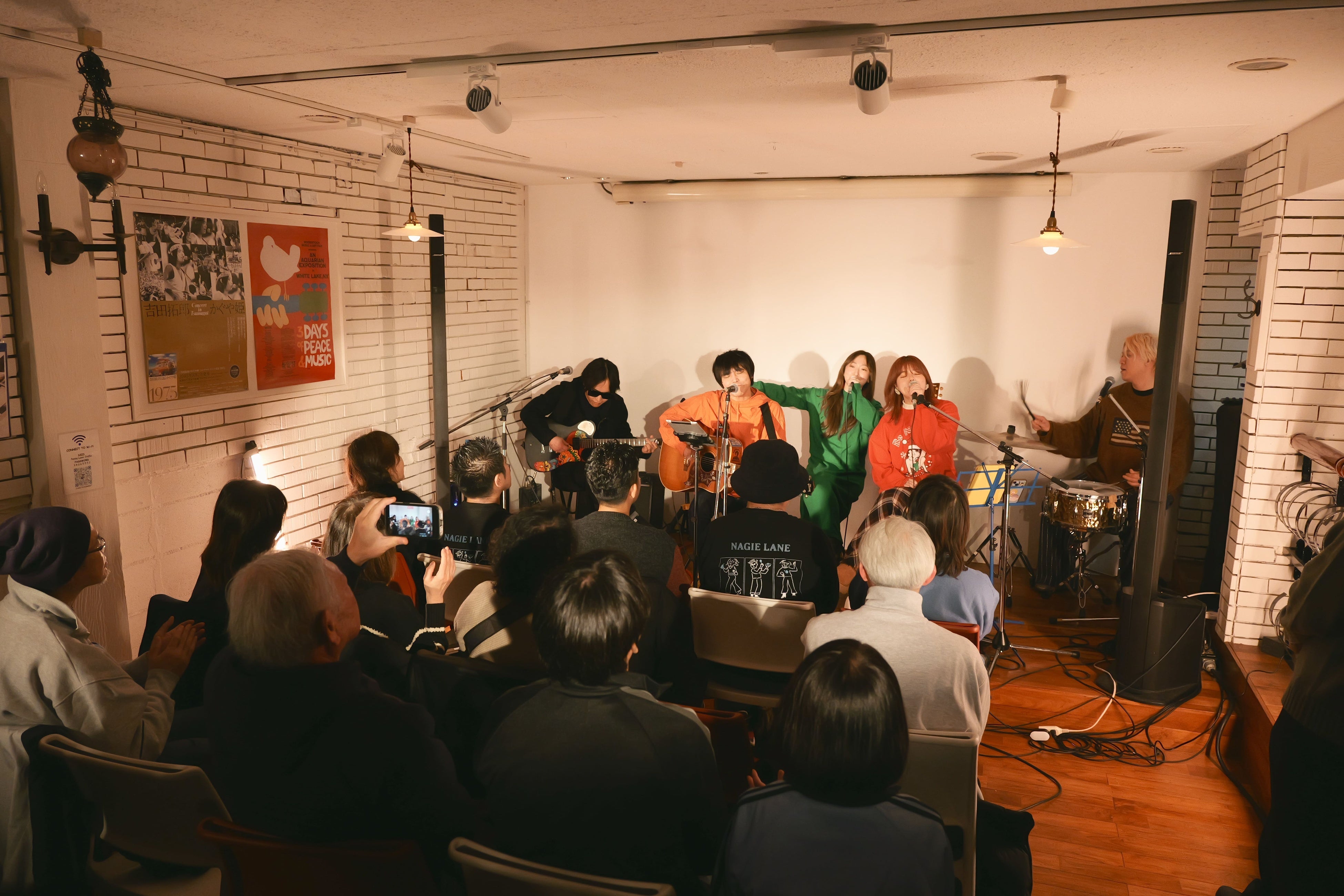 そして今回のコラボイベント最大の注目である二組の共演が、最終パートに引き継がれる。元々mikikoのラジオ番組にSAHAJiが出演した事が契機で、barattiが作詞、西田蕉太郎が作曲を担当する楽曲制作になるのだが、これまでお互いの作風に提示されてこなかったブリティッシュ・トラッド・フォーク色が濃厚な世界観は、これから彼等の新しい扉を更に開け放たれる息吹を与えてくれるかのような暖かさを強く心に刻み込むように、今回初披露の会場を満たしていた。Nagie Lane、SAHAJiの両者の魅力が完全に融合したこの世界観が、また新たな作品の予感をも与える有意義な時間となった。