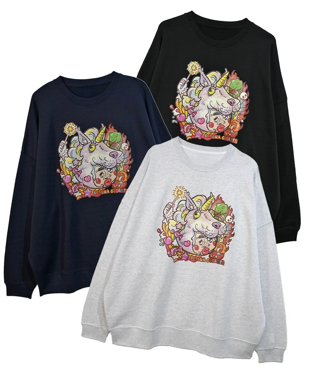 mune x Briana Gigante Bari Cawaii ビッグシルエットトレーナー 「ユニコーンの皮をかぶった娘」