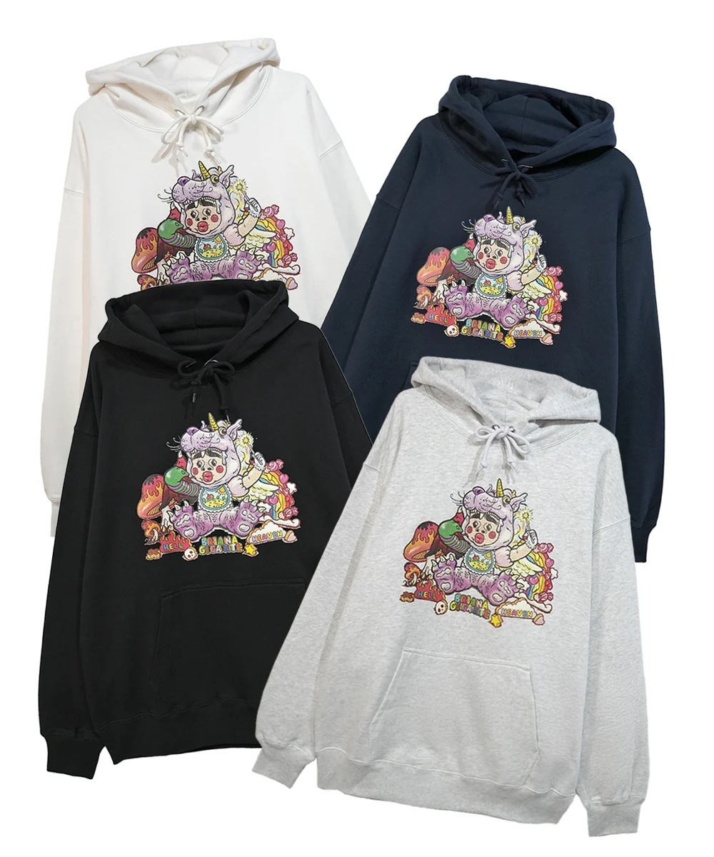 ・mune x Briana Gigante Bari Cawaii フーディー「すごまじい欲張りちゃん」 価格: 13,500円(税込)