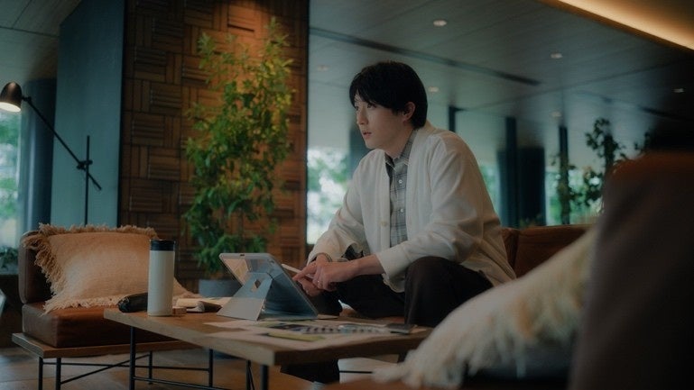 夜には、建物上層階に設けられたスカイデッキで、二人が夜景を眺めながら一日の終わりをゆったりと過ごします。最後に「私たちは、ずっと、ここで。三井に住んでいます。」と語りかけ、“一人でも、誰かと一緒でも、心地よい日々が続いていく暮らし”を、ウカスカジーの楽曲「My Home」のメロディに乗せて丁寧に描いています。