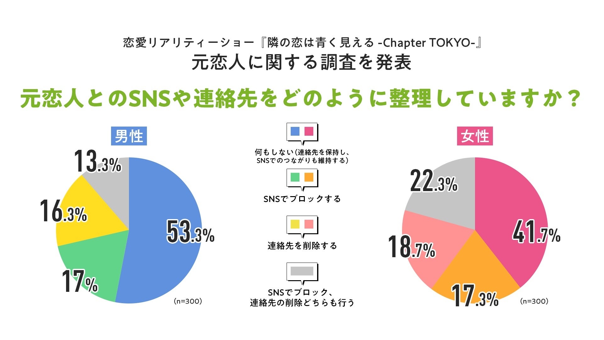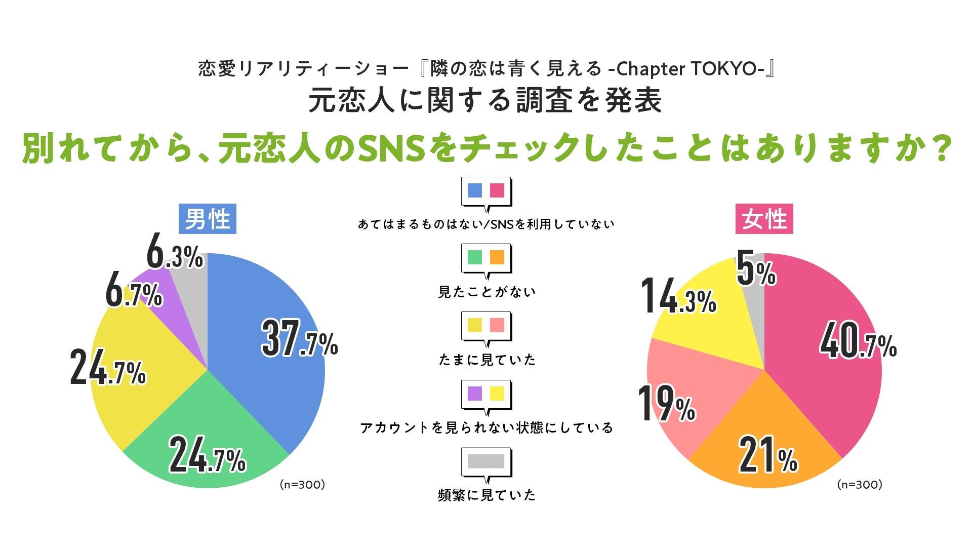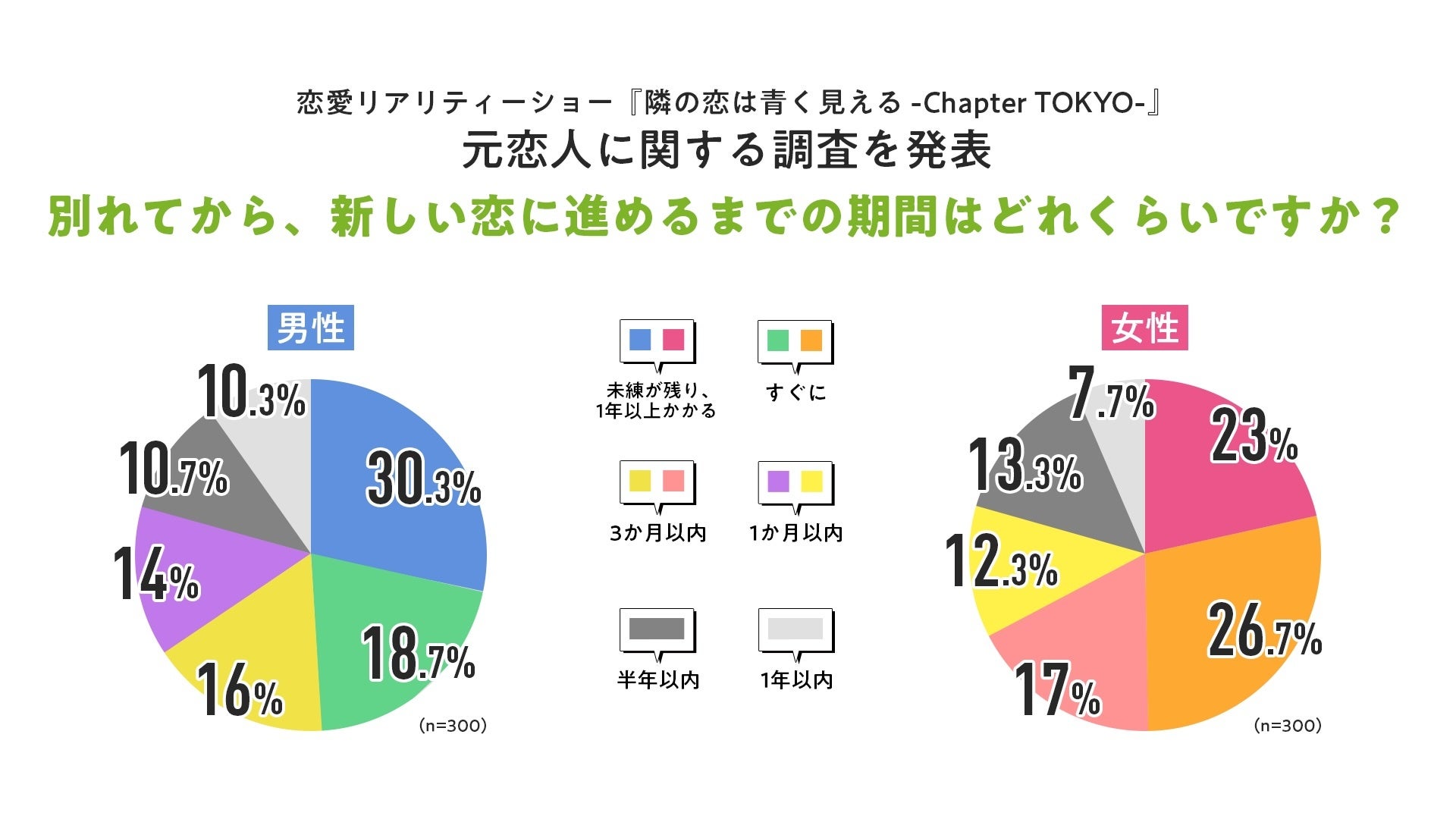 悩めるカップルたちが禁断の‟公認”浮気生活を通じて、迷い続けた関係に答えを見つける恋愛リアリティーショー『隣の恋は青く見える -Chapter TOKYO-』は、10代から30代の男女600名を対象に、元恋人に関するアンケート調査を実施いたしました。