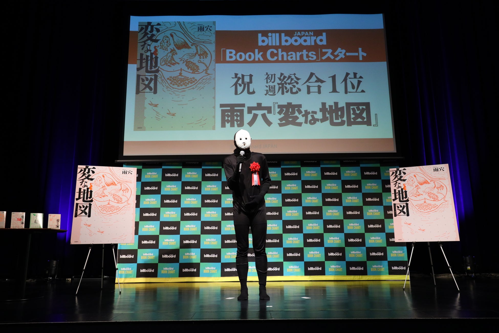 そんな『変な地図』は、11月6日よりビルボードジャパンがスタートさせた、日本初となる紙書籍・電子書籍・図書館貸出などを統合した総合書籍チャート「Billboard JAPAN Book Charts」において、総合書籍チャート「JAPAN Book Hot 100」の初代1位を獲得。これを受け、12月16日、ビルボードライブ東京にて授賞式が開催され、雨穴本人が登壇し、受賞の喜びを語った。