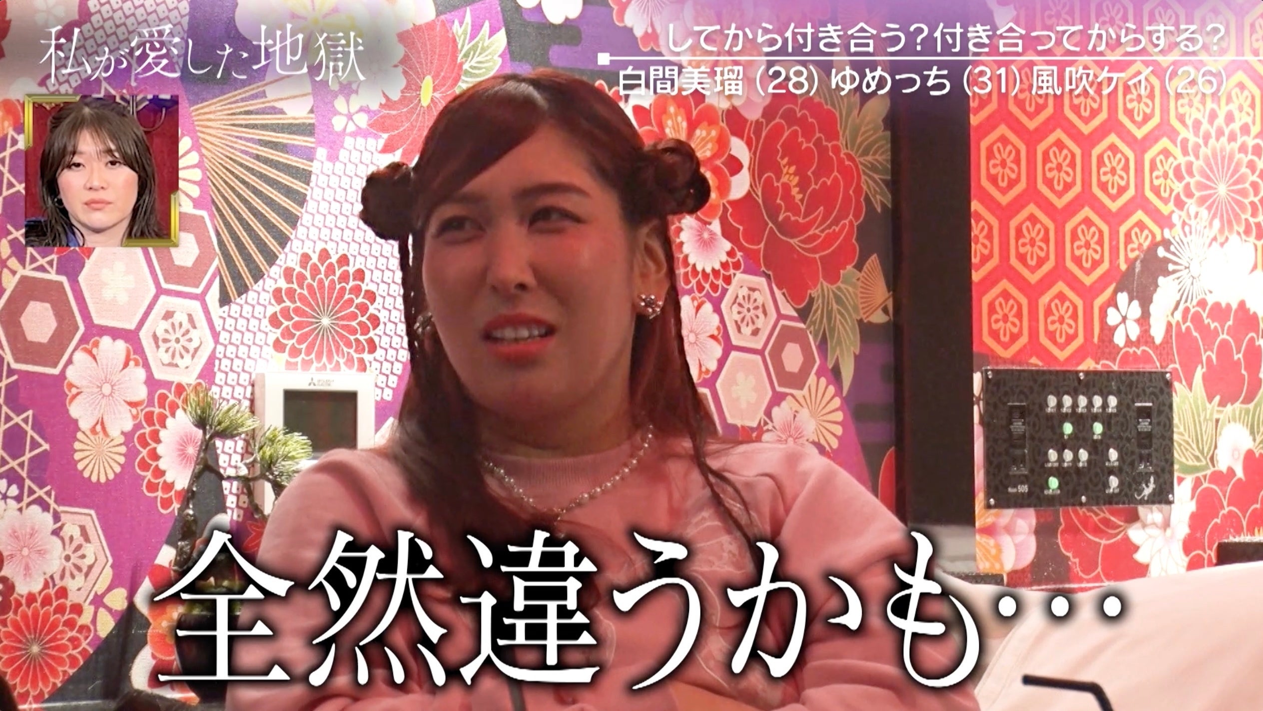 理想の男性のタイプを語る場面では、「ムキムキで、背中が大きくて、毛が好き」と明かした白間に、ゆめっちが「一緒!」と大共感。「ヒゲも好きやし、腕毛好き、どこの毛も好き」としたものの「でも…下は嫌や」とまで語った白間に、風吹が「大矛盾やん」「人間的に守らなあかんとこやから生えてる」とツッコミを入れました。