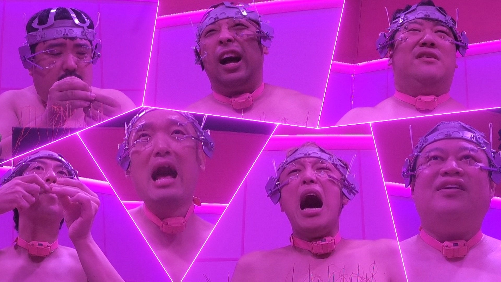 そんな中、再び別室へ移動するようにとアナウンスされた7人。別室に入った途端、突然暗闇になり、芸人たちは服を脱がされふんどし一丁の姿に。みなみかわが「確実に地上波じゃないな」と察する場面もありました。