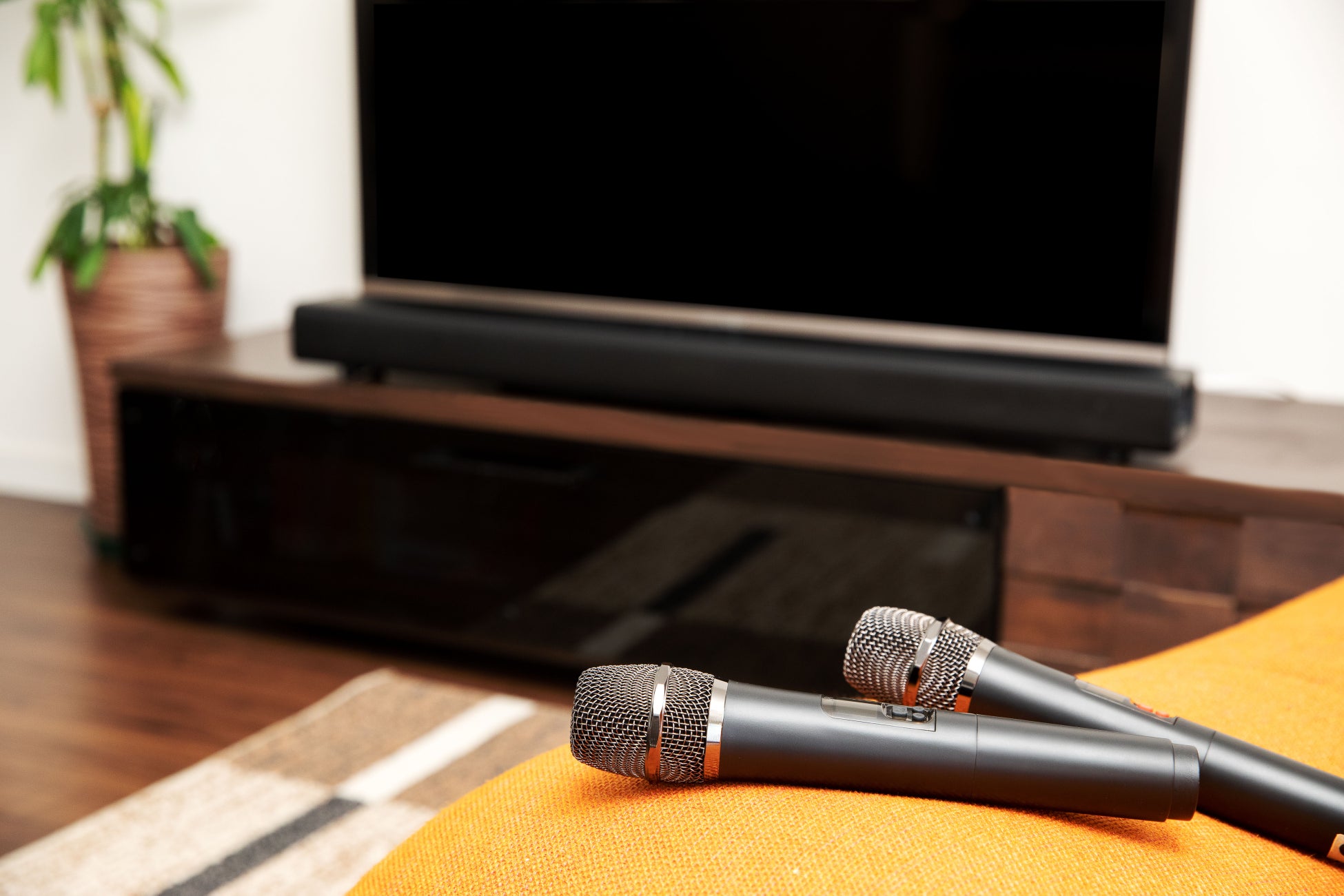 「KARA×KARA」は、テレビに接続するだけで、自宅にいながらカラオケボックスさながらの音響で歌える高音質スピーカーシステムです。本格的なエコー機能、ボーカルカット、ワイヤレスマイク2本付属など、充実の機能を搭載しています。