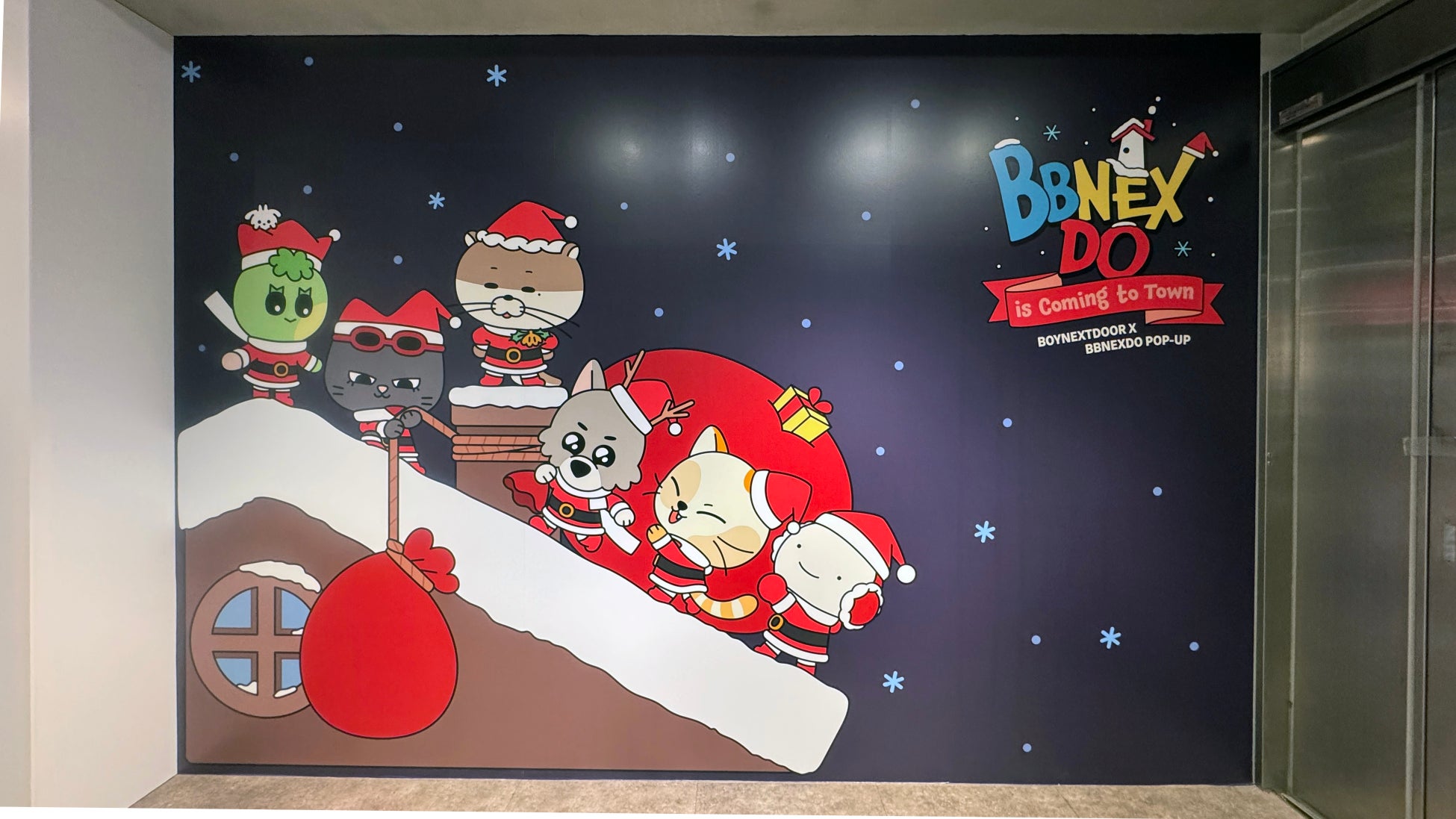 ポップアップストアに入った瞬間、BBNEXDOがあしらわれた可愛い空間に包まれます。BBNEXDOに囲まれた部屋の中にいるようなエリアや空から舞い降りてきたBBNEXDOフォトスポット、そしてホリデー使用のBBNEXDOの映像が流れていたりと、まさに‘BBNEXDO is Coming to Town’なこのシーズンにぴったりな雰囲気に充たされます。