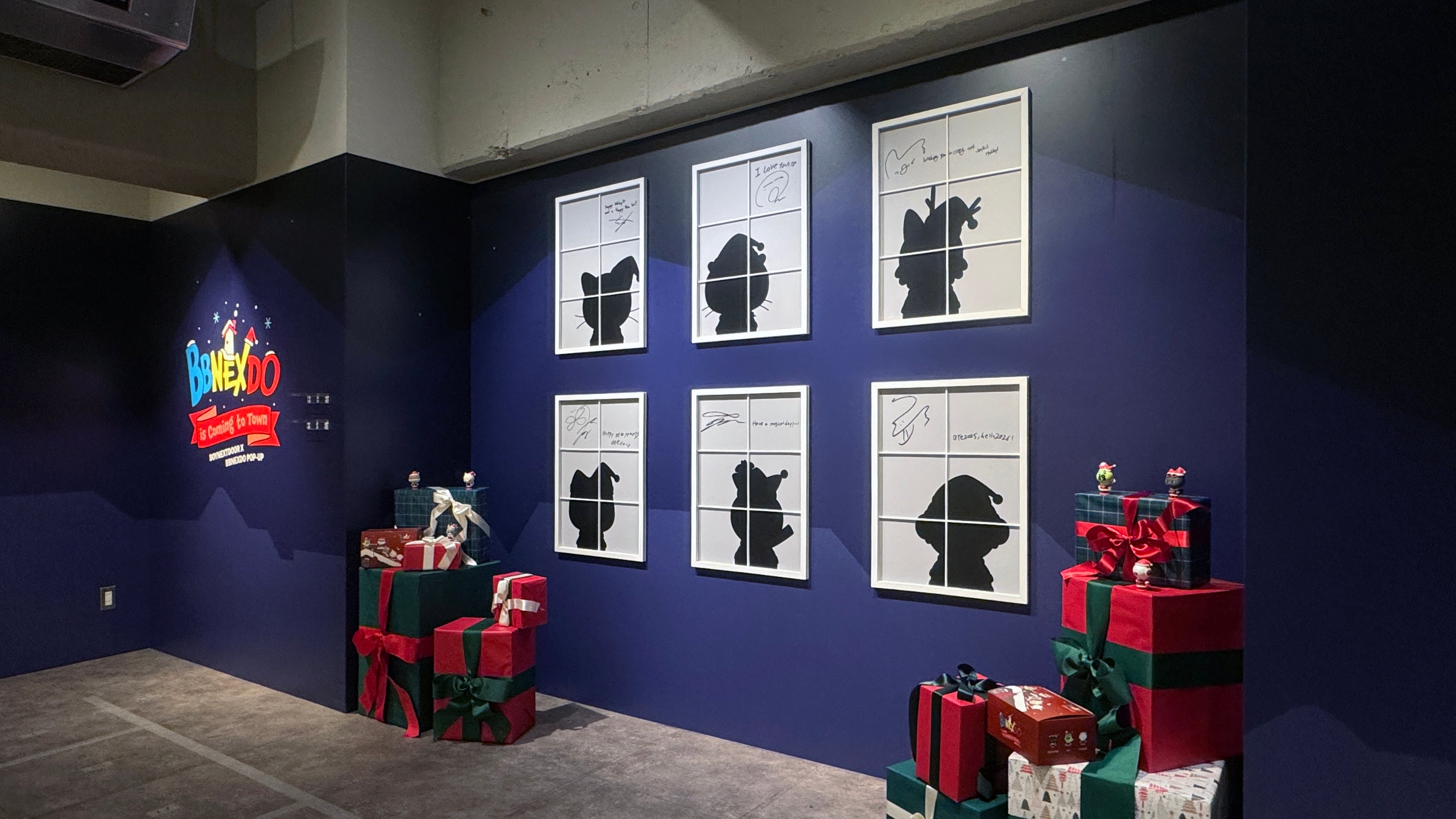 ポップアップストアに入った瞬間、BBNEXDOがあしらわれた可愛い空間に包まれます。BBNEXDOに囲まれた部屋の中にいるようなエリアや空から舞い降りてきたBBNEXDOフォトスポット、そしてホリデー使用のBBNEXDOの映像が流れていたりと、まさに‘BBNEXDO is Coming to Town’なこのシーズンにぴったりな雰囲気に充たされます。