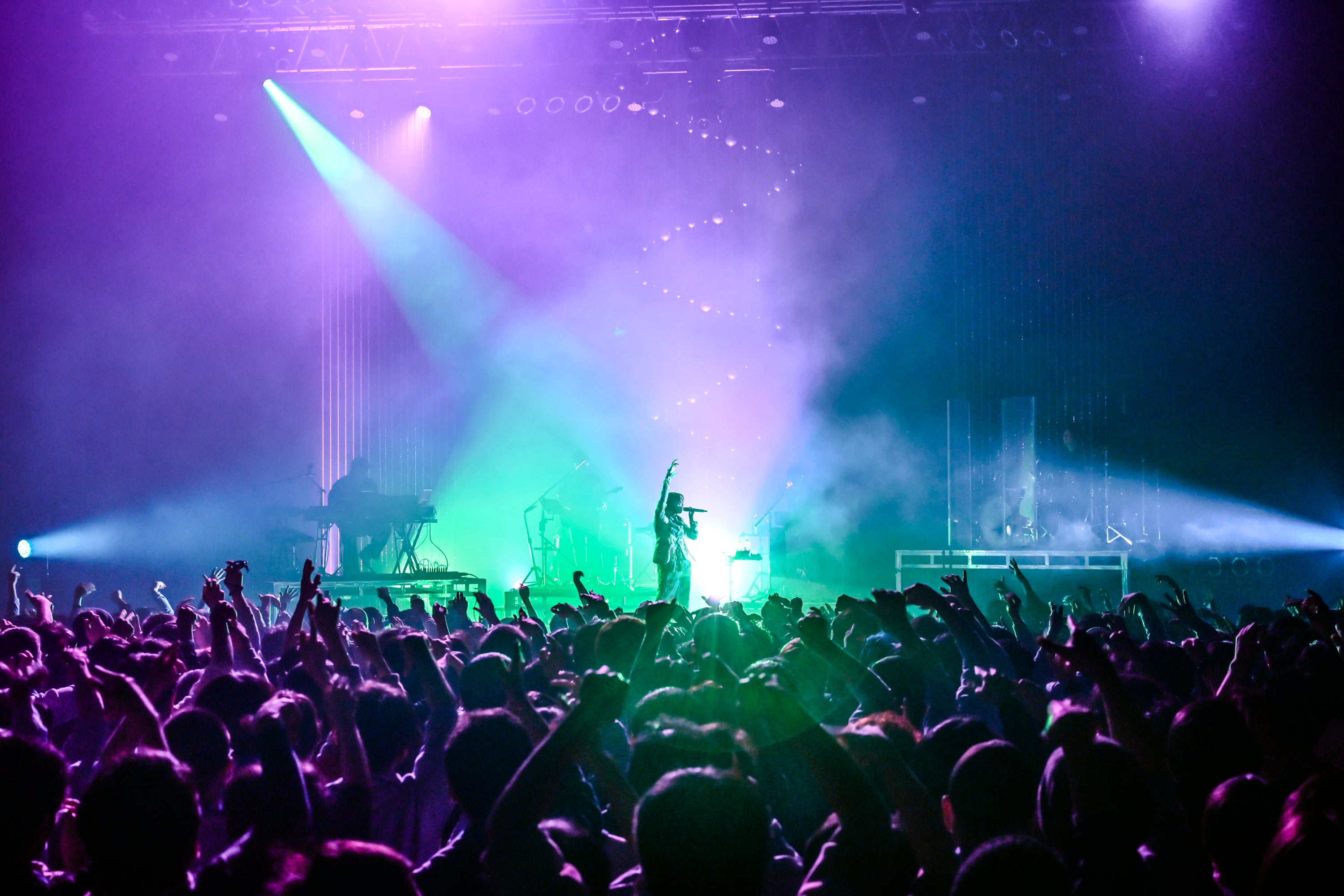 ライブは、おとぎ話のような歌詞が印象的な「twelve」よりスタート。神秘的なレーザーとスモークで包まれた楠木ともりが、楽曲のもつ世界観を存分に表現し、観客を物語へと引き込んでいく。続いて幕が落とされバンドメンバーが登場すると、「風前の灯火」「BONE ASH」を披露し、会場の熱気は最高潮に。