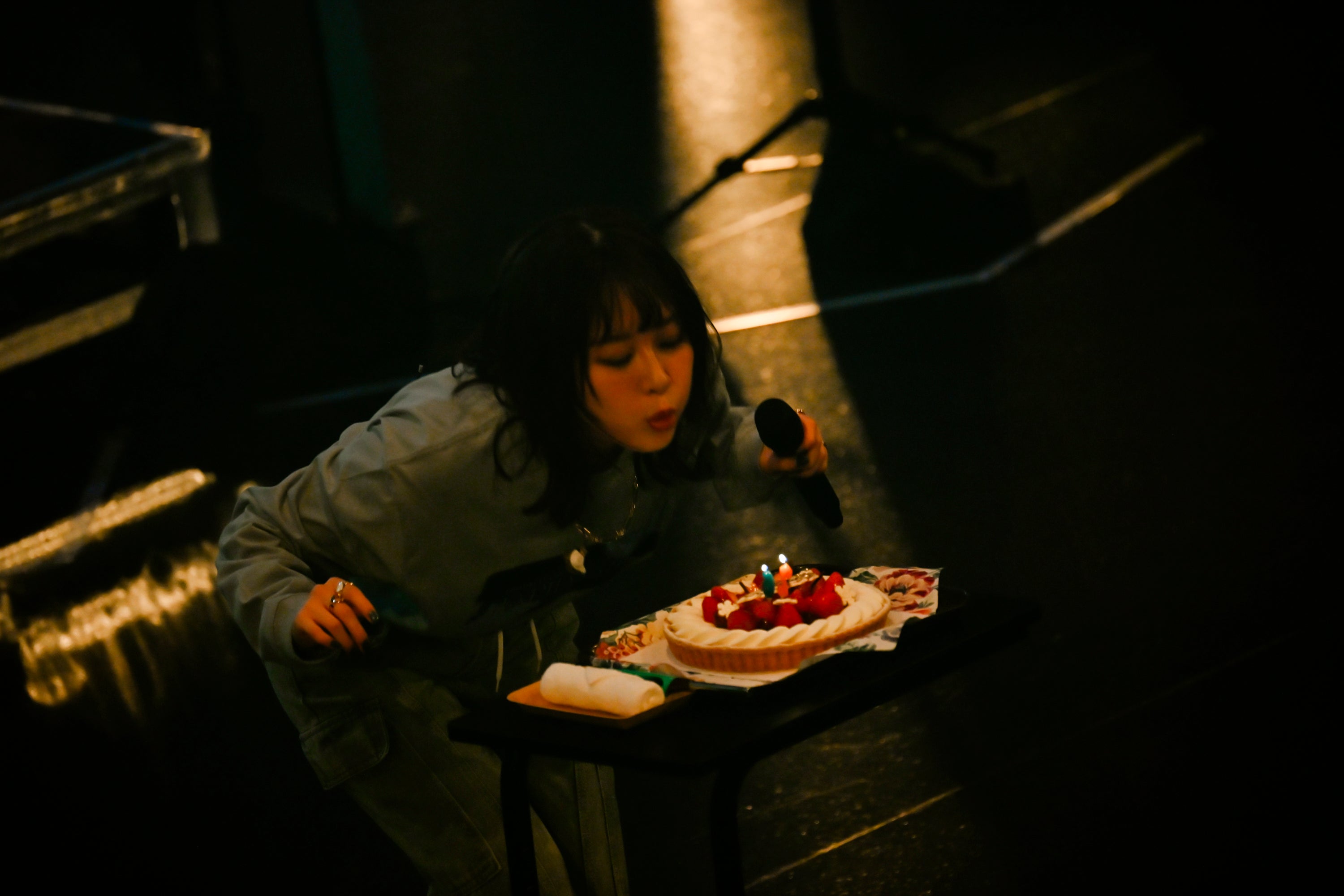 最後に拳を掲げて力強く「back to back」を披露すると、曲中ではこの日誕生日を迎えた楠木ともりへのサプライズ演出が。バンドメンバーによるバースデーソングの合唱とともにステージ上へケーキが運ばれると、客席からは大きな拍手と歓声が沸き起こり、この日限りの特別なライブは幕を閉じた。