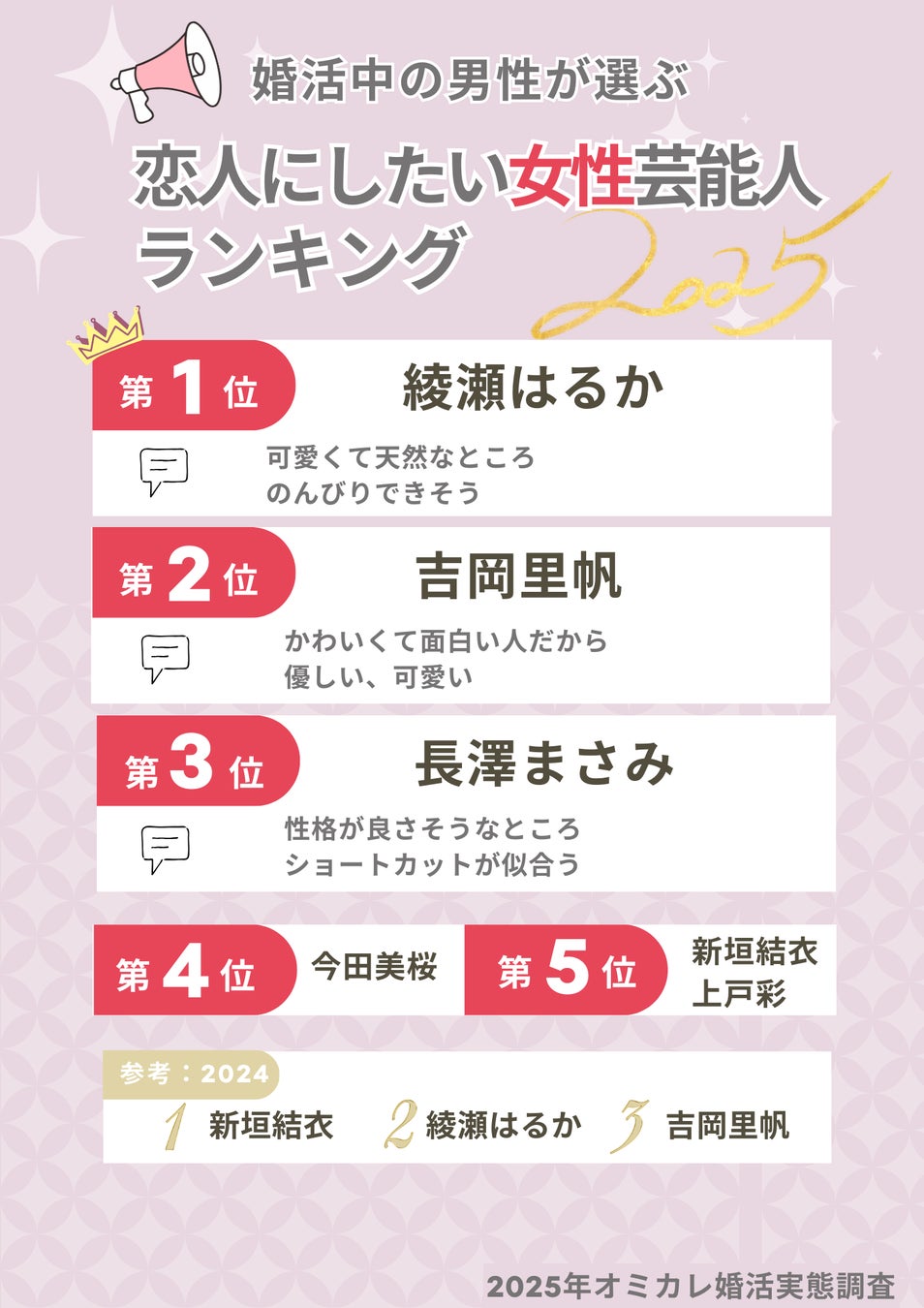 「#婚活といえばオミカレ」の婚活実態調査。875人の婚活男女に聞いた理想の芸能人夫婦ランキングから、「結婚」と「恋人」に求める違い、「憧れの女性像」などリアルな声で見えた令和の「理想の結婚」とは