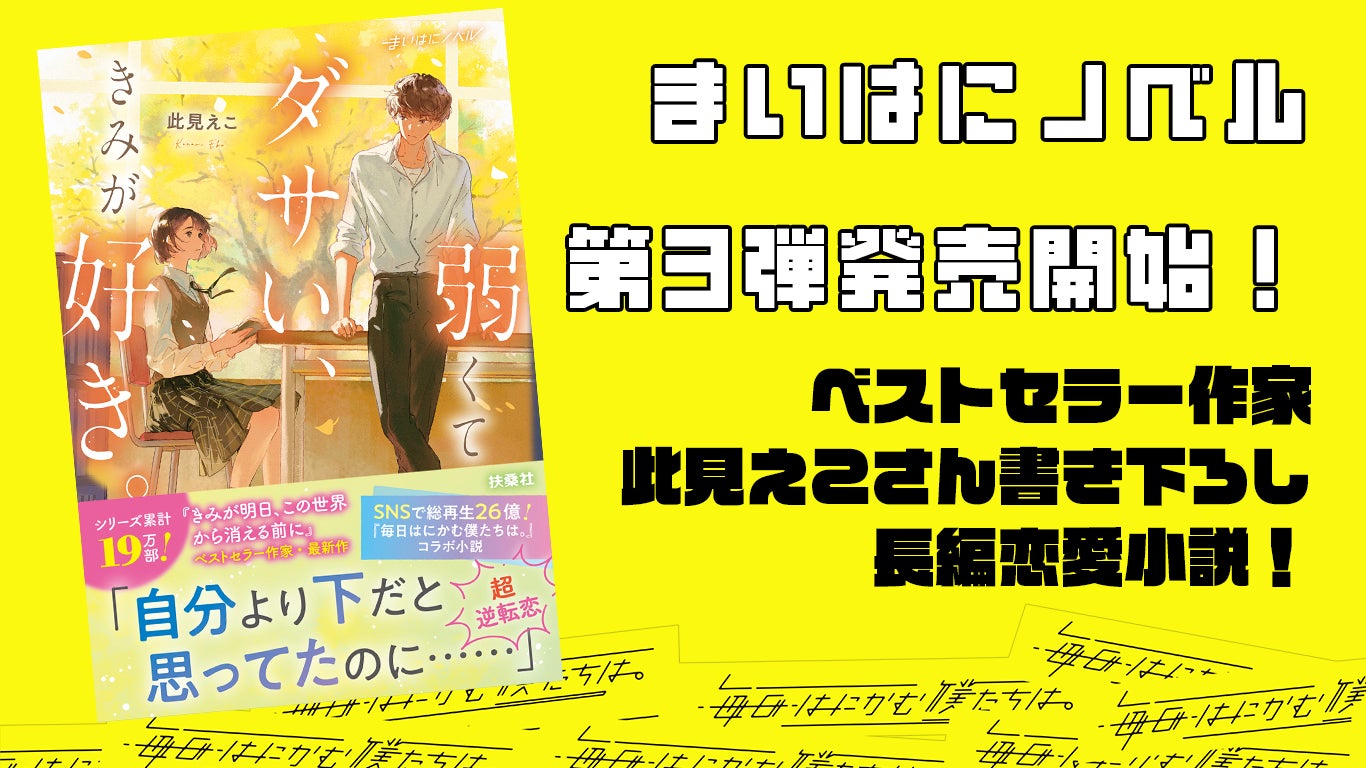 SNS総再生回数26億回超え“まいはに”から、待望のプロデュース小説第3弾が発売開始!ベストセラー作家・此見えこ書き下ろし「弱くてダサい、きみが好き。」