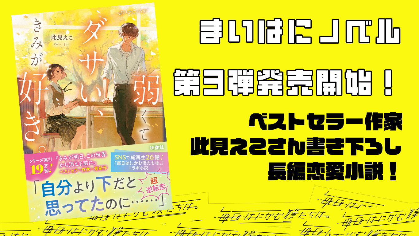 SNS総再生回数26億回超え“まいはに”から、待望のプロデュース小説第3弾が発売開始!ベストセラー作家・此見えこ書き下ろし「弱くてダサい、きみが好き。」
