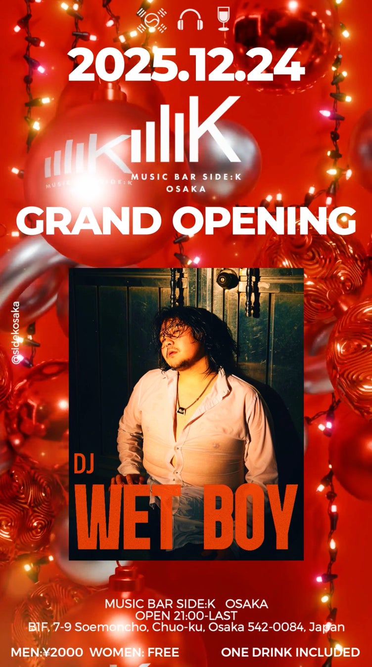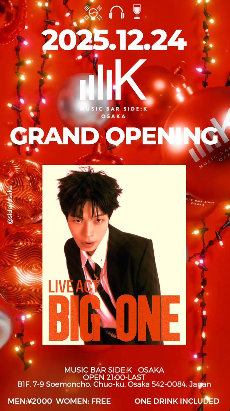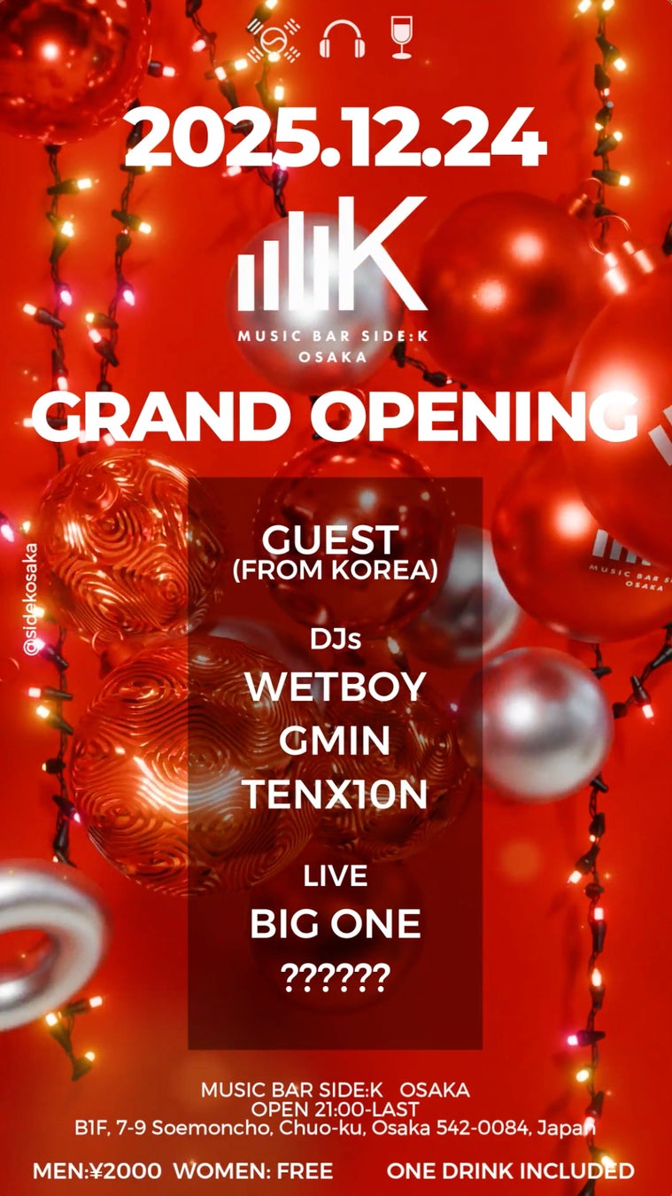 株式会社SWITCHH(本社:福岡市、代表取締役:原口祥太朗)は、2025年12月24(水)、大阪ミナミ(心斎橋・道頓堀)エリアに「MUSIC BAR SIDE:K(サイドケー)」をグランドオープンいたします。