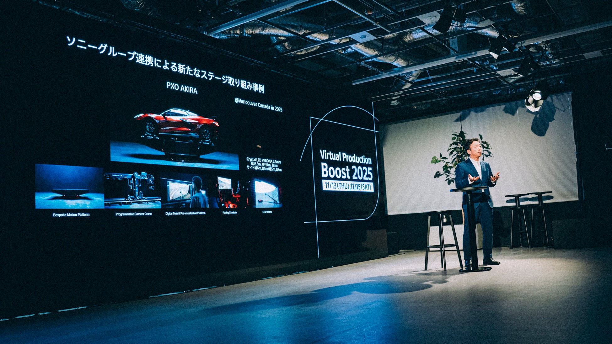 LEDを活用したバーチャルプロダクション(以下VP)は、映画・ドラマ・広告など幅広いジャンルで急速に普及しており、もはや一部の先進企業だけのものではありません。この動きをさらに加速させるため、ソニーグループ株式会社と株式会社KADOKAWAは資本業務提携後の協業活動のひとつとして、2025年11月13日と15日に「Virtual Production Boost 2025」(実行委員会:ソニーグループ/角川大映スタジオ)を開催しました。