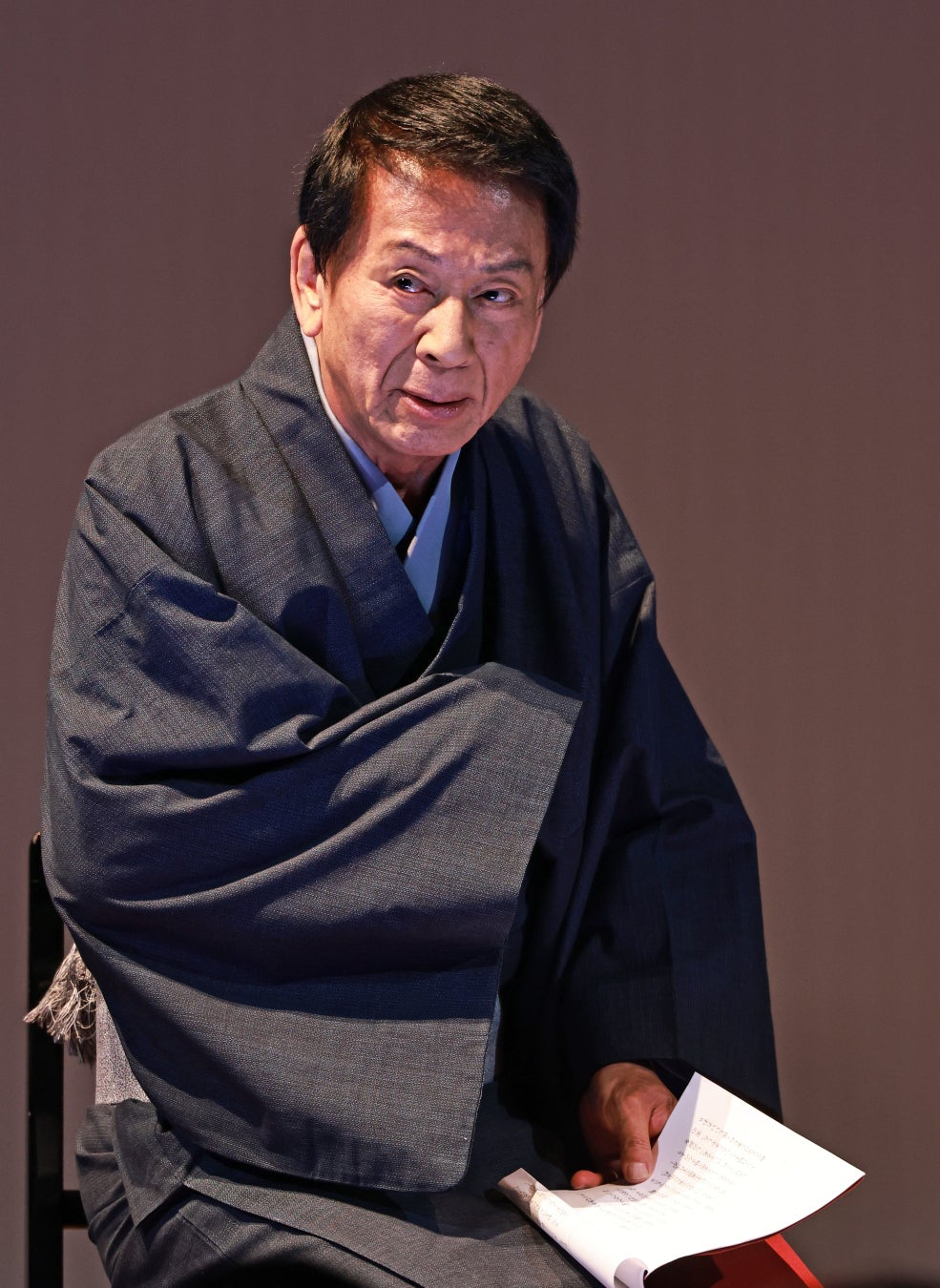今回のメインである舞台表現では、杉がこれまで演じてきた舞台作品のうち、特に思い入れのある1作『旅鴉半次郎 ふりむけば夕陽』を選定し、台本を読み上げる「本読み」(※①)の形で作品の一部を披露した。杉の舞台活動は、昭和44年(1969年)に京都・南座で座長を務めて以来、約36年に亘り杉劇団の座頭として活躍。その後は、プロデュース公演などを展開し、今回は平成25年(2013年)に大阪新歌舞伎座で杉が主演、脚本、演出を務めた『樅(もみ)ノ木は残った』(原作・山本周五郎)以来となる、約12年ぶりの舞台表現となった(※②)。