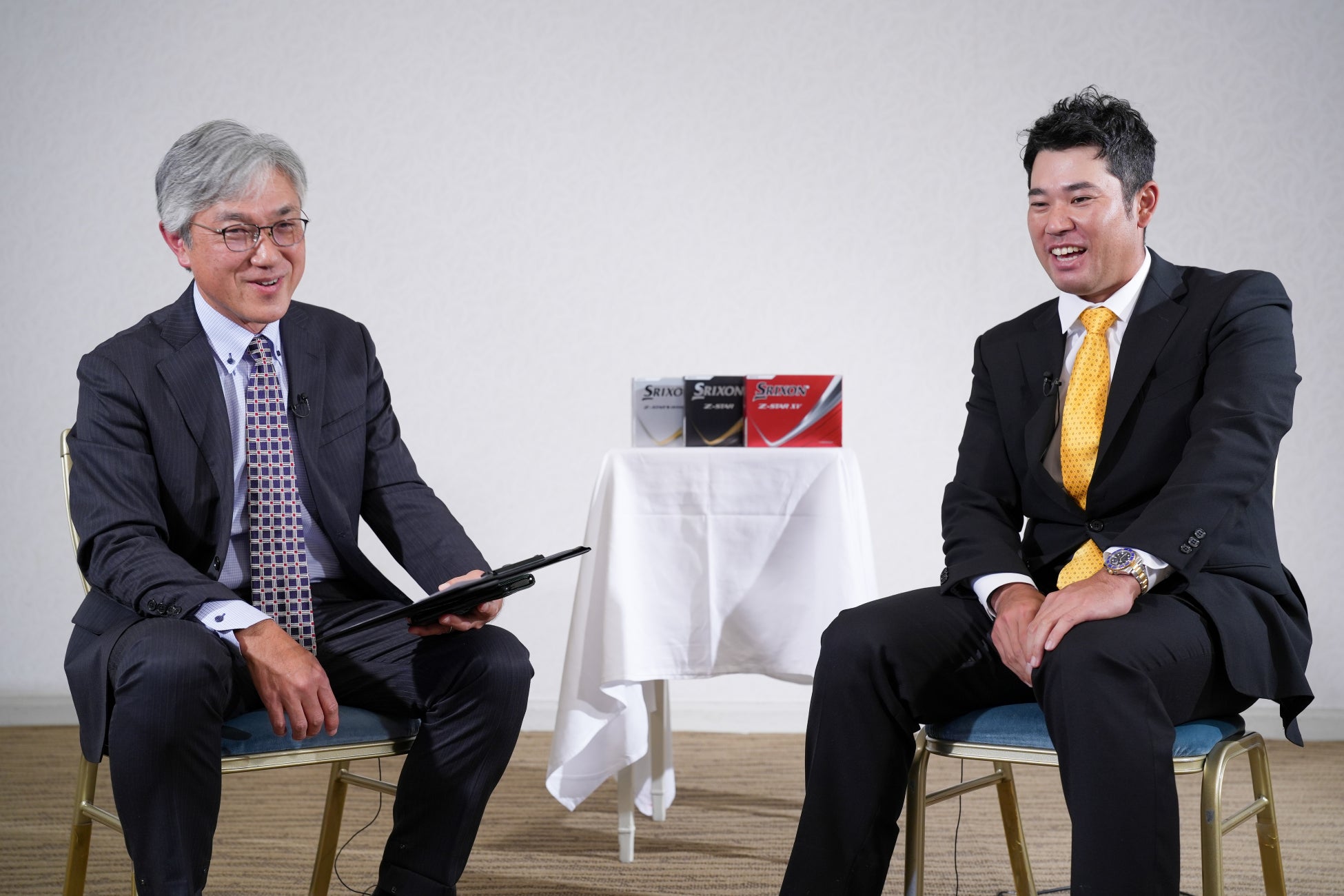 今回で11回目となる松山選手の特別番組はこのほど、東京都内で収録が行われました。スーツ姿で登場した松山選手をインタビュアーとして出迎えたのは、PGAツアーの解説でおなじみの佐藤信人プロ。