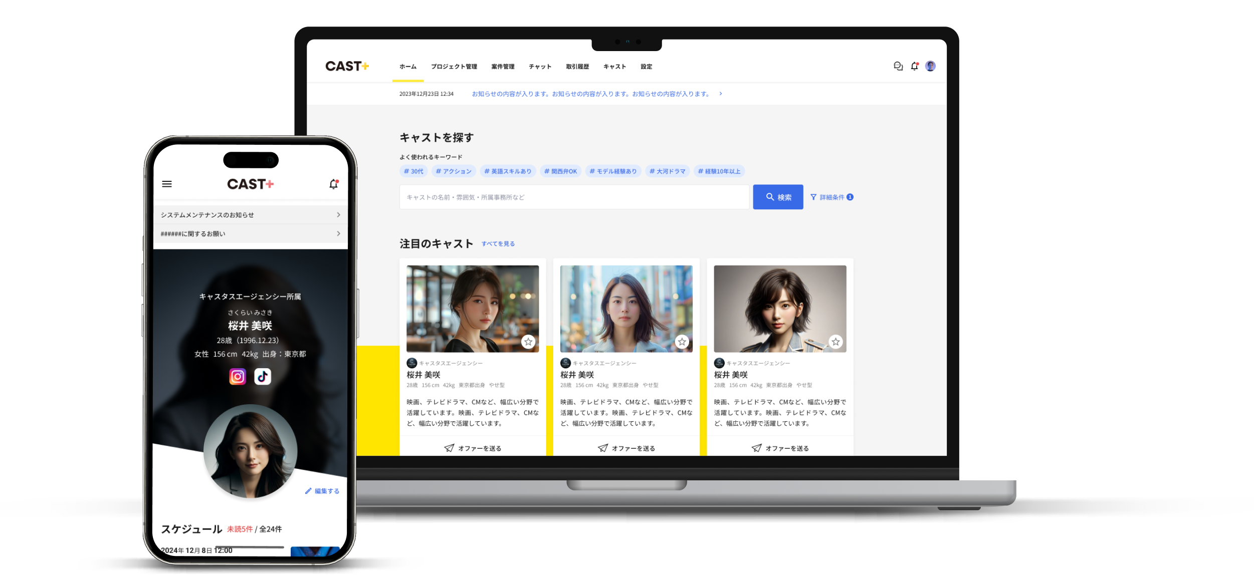 2025年9月にサービス提供を開始した「CAST+」は、制作会社・芸能事務所・キャストの3者をつなぐエンタメ業界特化型マッチングプラットフォームです。