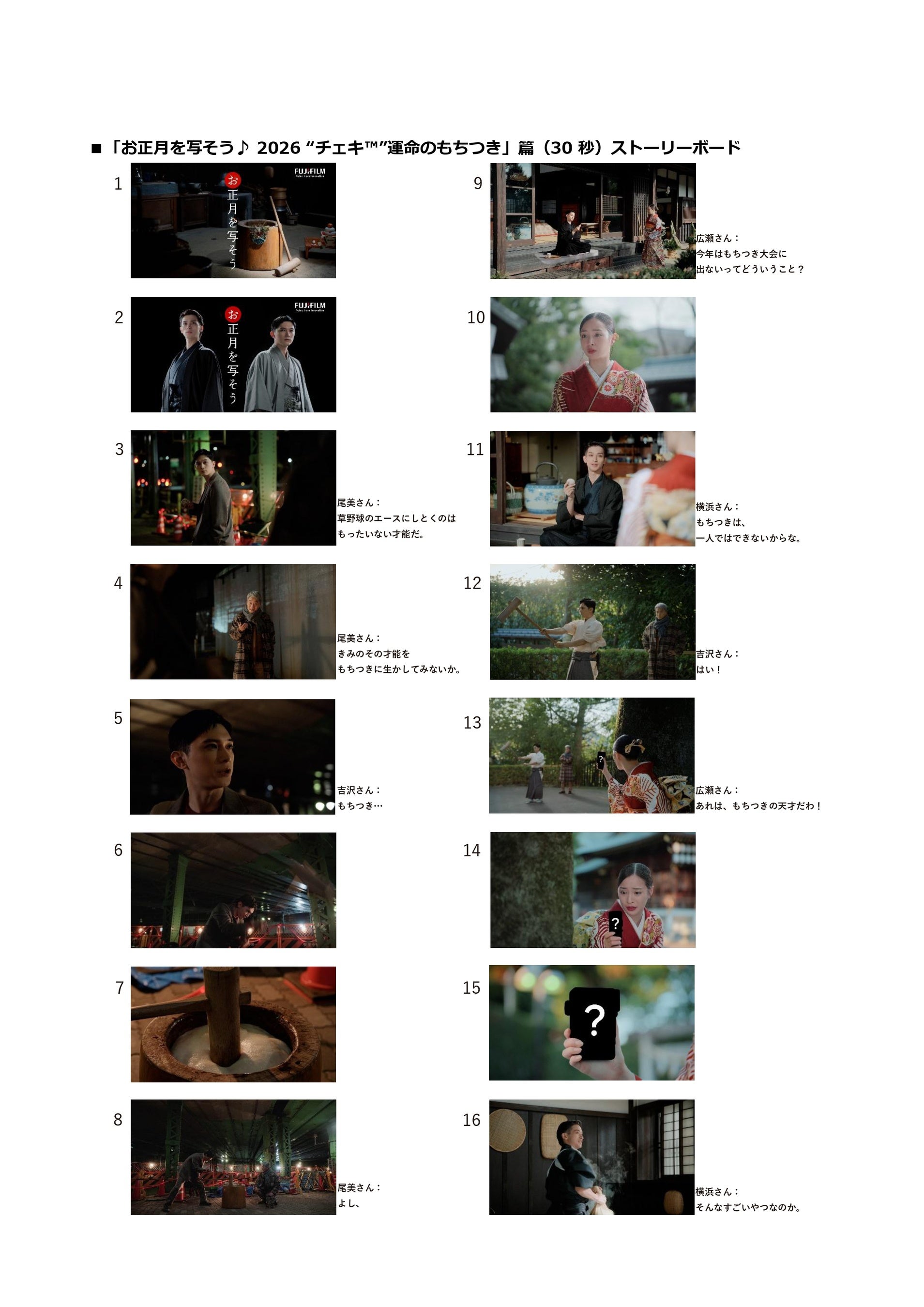 ■「お正月を写そう♪ 2026 “チェキ™”運命のもちつき」篇(30 秒)ストーリーボード