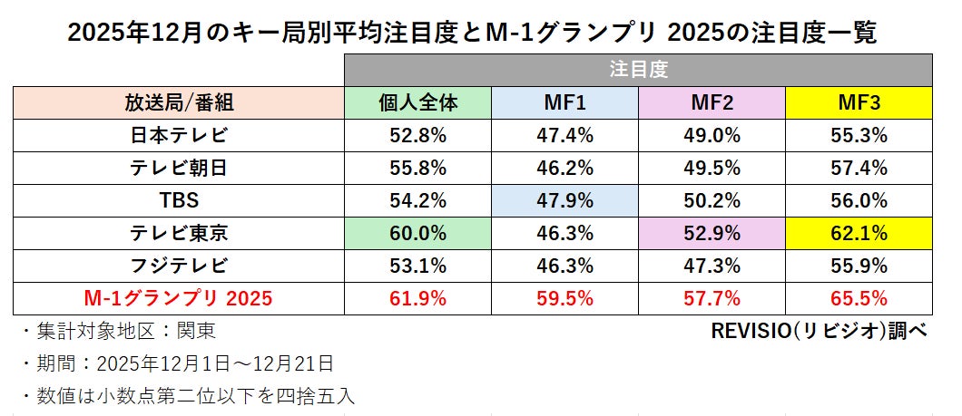 M-1グランプリ2025の注目度は、どの属性においても2025年12月の局別平均注目度を上回った