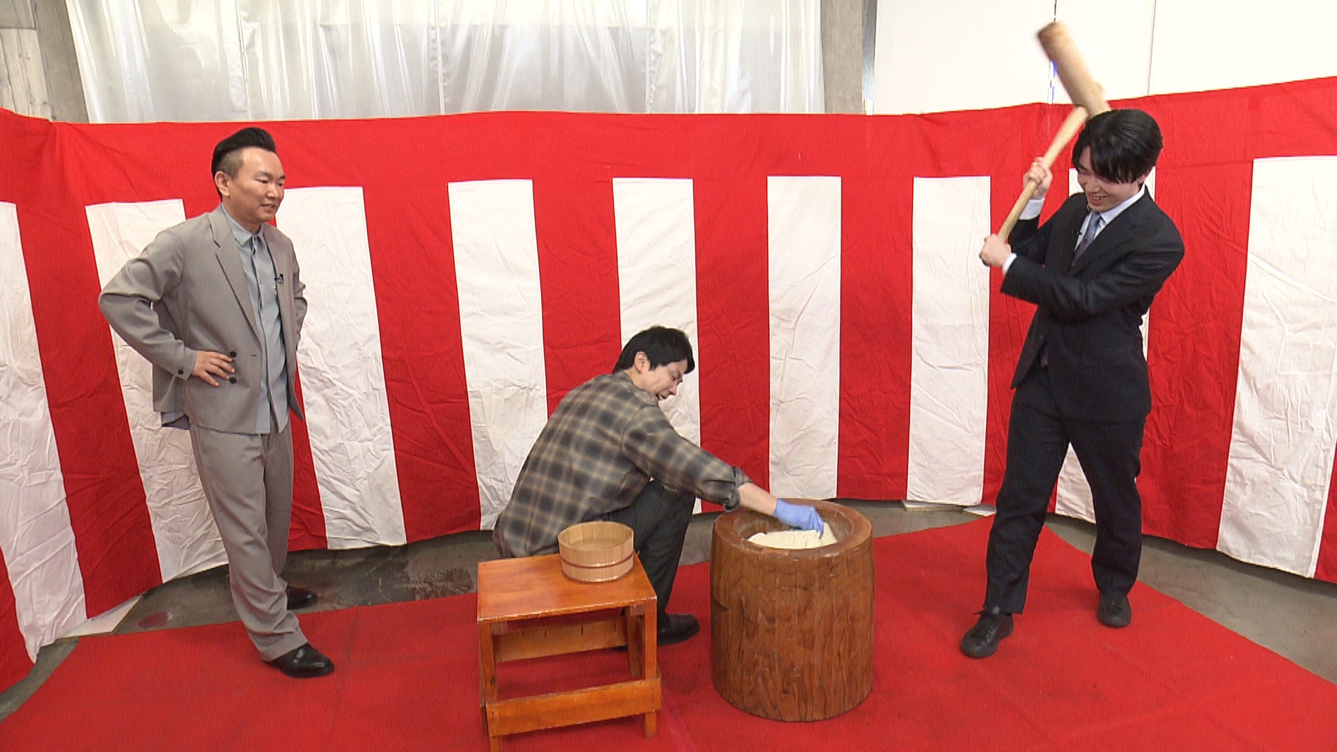 【藤井六冠&かまいたち ゲン担ぎで餅つき!?】