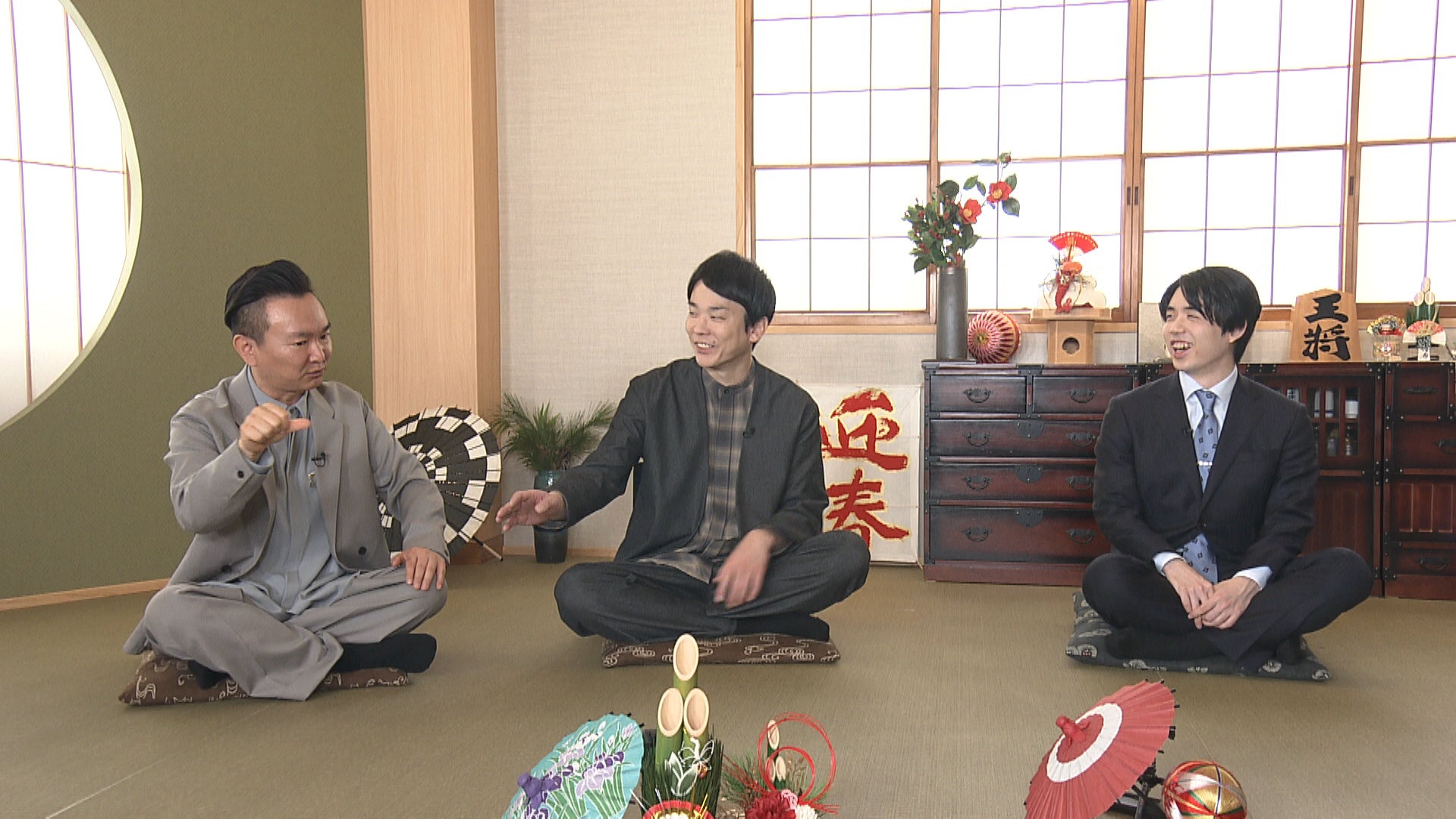 後半では、棋士仲間を迎え、「お年玉争奪!藤井聡太六冠クイズ」を展開。スマートフォンで撮った写真、カラオケ経験、よく見る夢、性格を将棋の駒に例えると何か、タイムマシンで行きたい場所――など、盤外の意外な一面が次々と明らかになり、スタジオは笑いと驚きに包まれます。