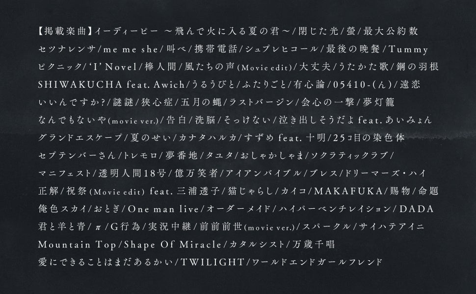 ジャンルという既存の枠組みに捉われない音楽性、恋愛から死生観までを哲学的に、情緒的に描いた歌詞で、思春期を過ごす世代を中心に幅広い層に大きな支持を受けている。