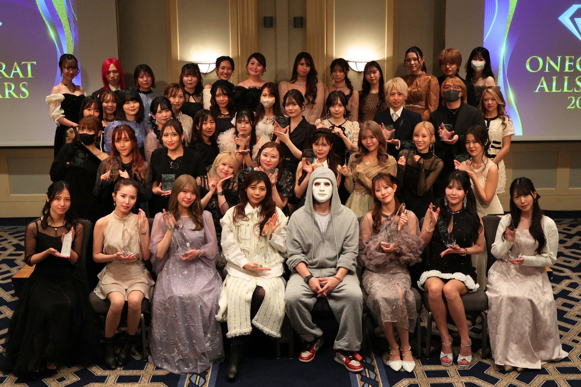 表彰式では、それぞれ上位に輝いたライバーから受賞コメントをいただき、日々の配信に懸ける想いや支えてくれるファンへの感謝の言葉が語られました。ステージ上での記念撮影に続き、最後は会場にいる全ライバーでの集合写真を撮影し、ONECARATの「仲間」としての一体感が強く感じられる時間となりました。
