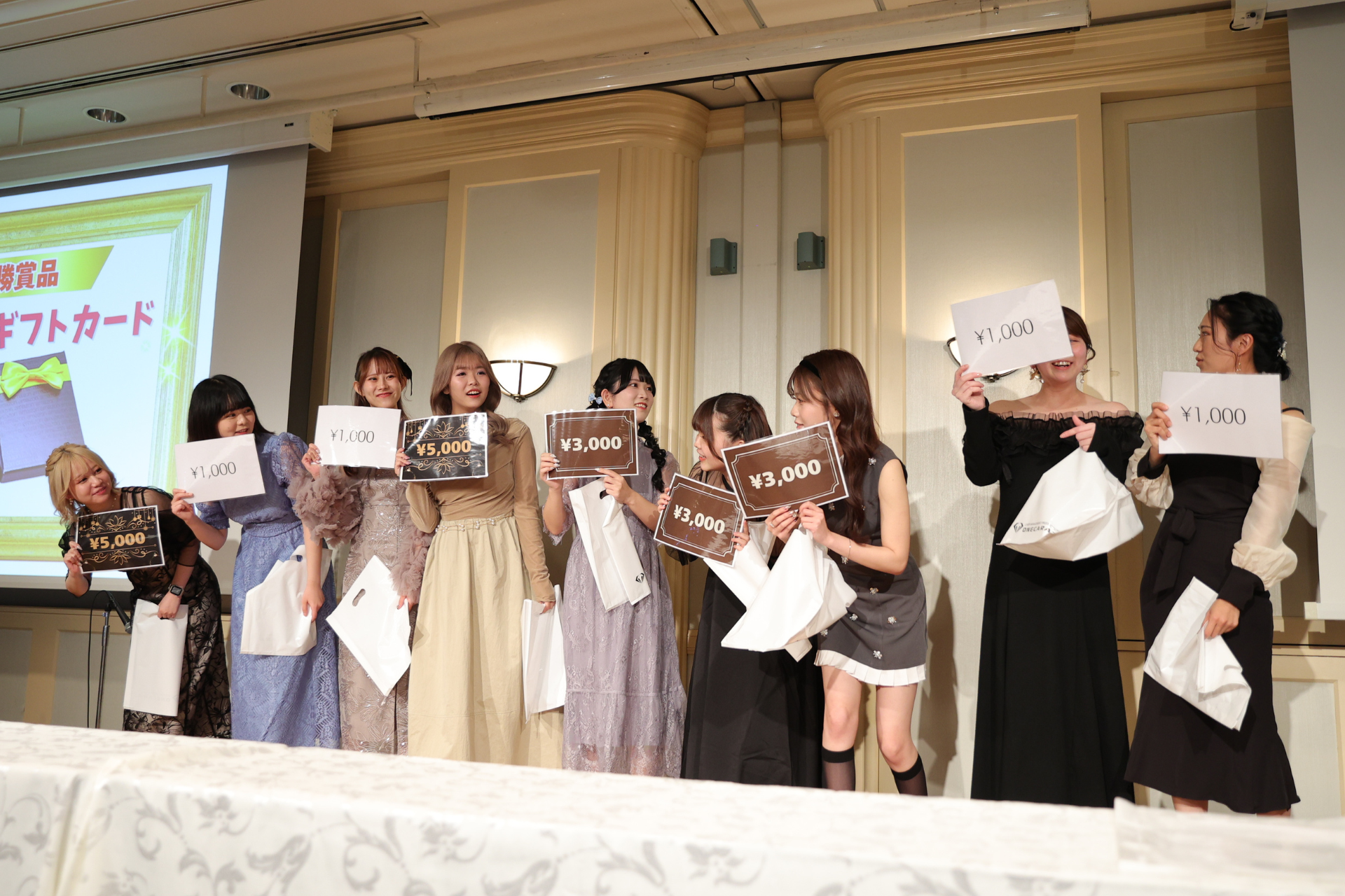 見事優勝したチームには、最後の挑戦として10枚の袋の中からカードを1人1枚引き、書かれた金額分のAmazonギフトカードが貰える「運試し」に挑戦してもらいました。結果は惜しくも全員が最高額を逃す展開となりましたが、最後の瞬間まで笑いと驚きに包まれる、ONECARATらしい盛り上がりの中で第1プログラムは幕を閉じました。