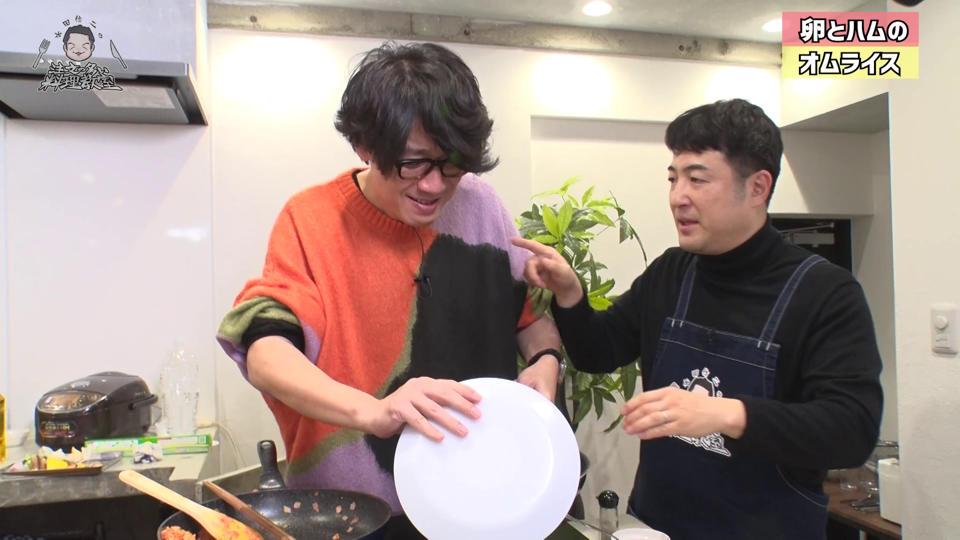 昨年、放送された大阪の同期芸人たちを迎えた新年会SPはなんと138万回も再生されたということを聞き、今回呼ばれた東京の同期である囲碁将棋、しずる、サルゴリラの3組は焦りつつも気合いが入ります。サルゴリラは「フルーツを使ったオシャレな料理」、しずるは「やげん軟骨を使った料理」、囲碁将棋は「卵とハムを使った料理」をリクエストし、これら3品に加えて水田おすすめの逸品料理も含め、1時間の放送時間の中で、今回はなんと4品も作ることに。手際の良さには定評のある水田ですが、どうなるのでしょうか!?