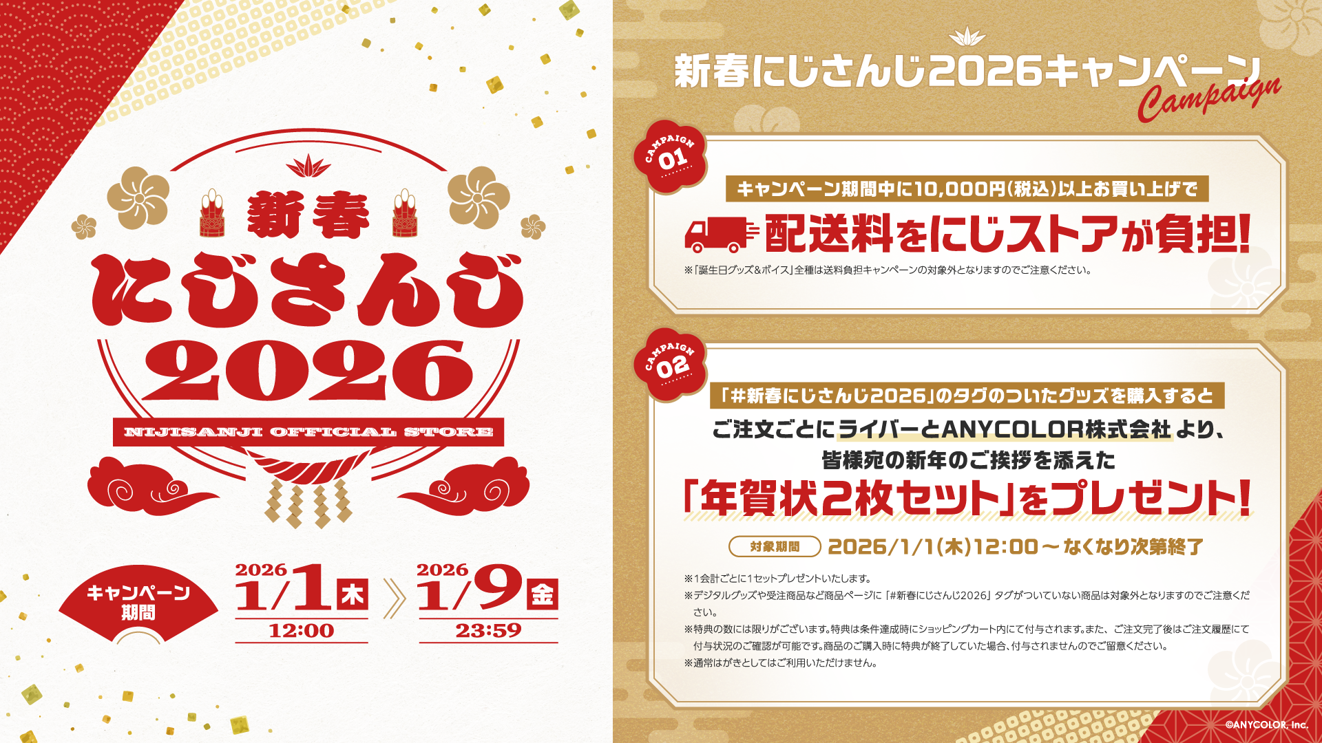 詳細は新春にじさんじ2026キャンペーン特設サイト(https://shop.nijisanji.jp/shinshunnijisanji2026.html)をご確認ください。
