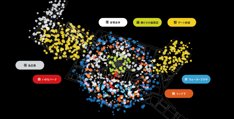 会場は「地・空・水・森・街・祭・命」という7つのエリアに分かれ、それぞれのテーマに沿って7名の作曲家が参加。時間帯や天候、会場の状況に応じて音が変化する、生成的なサウンドスケープが万博会期を通して展開されました。本プロジェクトでは、その中から6名の作曲家による音源を収録予定です。