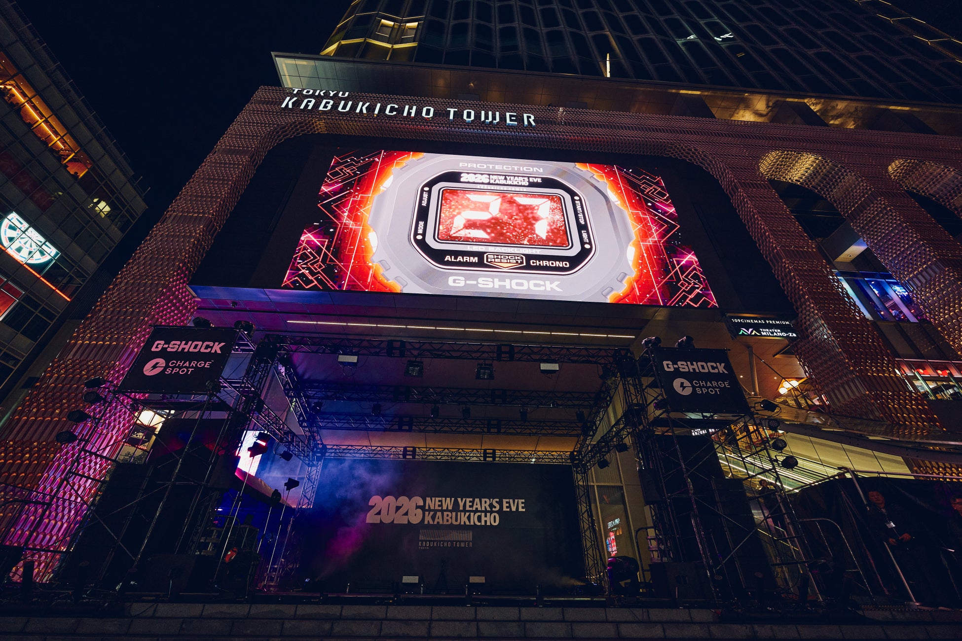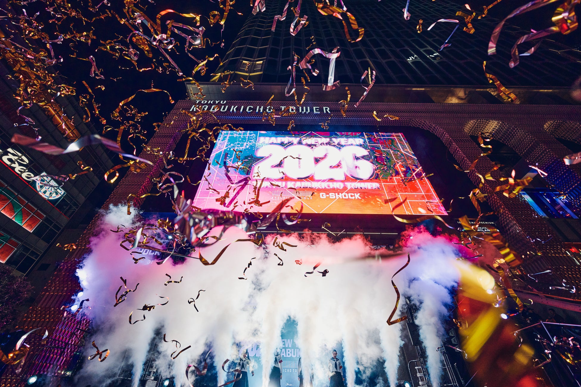 本施設は、2025年12月31日~2026年1月1日にかけて、カウントダウンイベント「2026 NEW YEAR’S EVE KABUKICHO」(以下、本イベント)を開催。本施設と隣接する歌舞伎町シネシティ広場では、昨年に引き続き、屋外ビジョンでのカウントダウン演出を実施しました。本年は、G-SHOCKを象徴する5600シリーズをフューチャーした映像で「5、4、3、2、1、Happy New Year!」と、国内外問わず広場に集まった約6,000人の一体感のある声とともに、歌舞伎町らしい新年を迎えました。