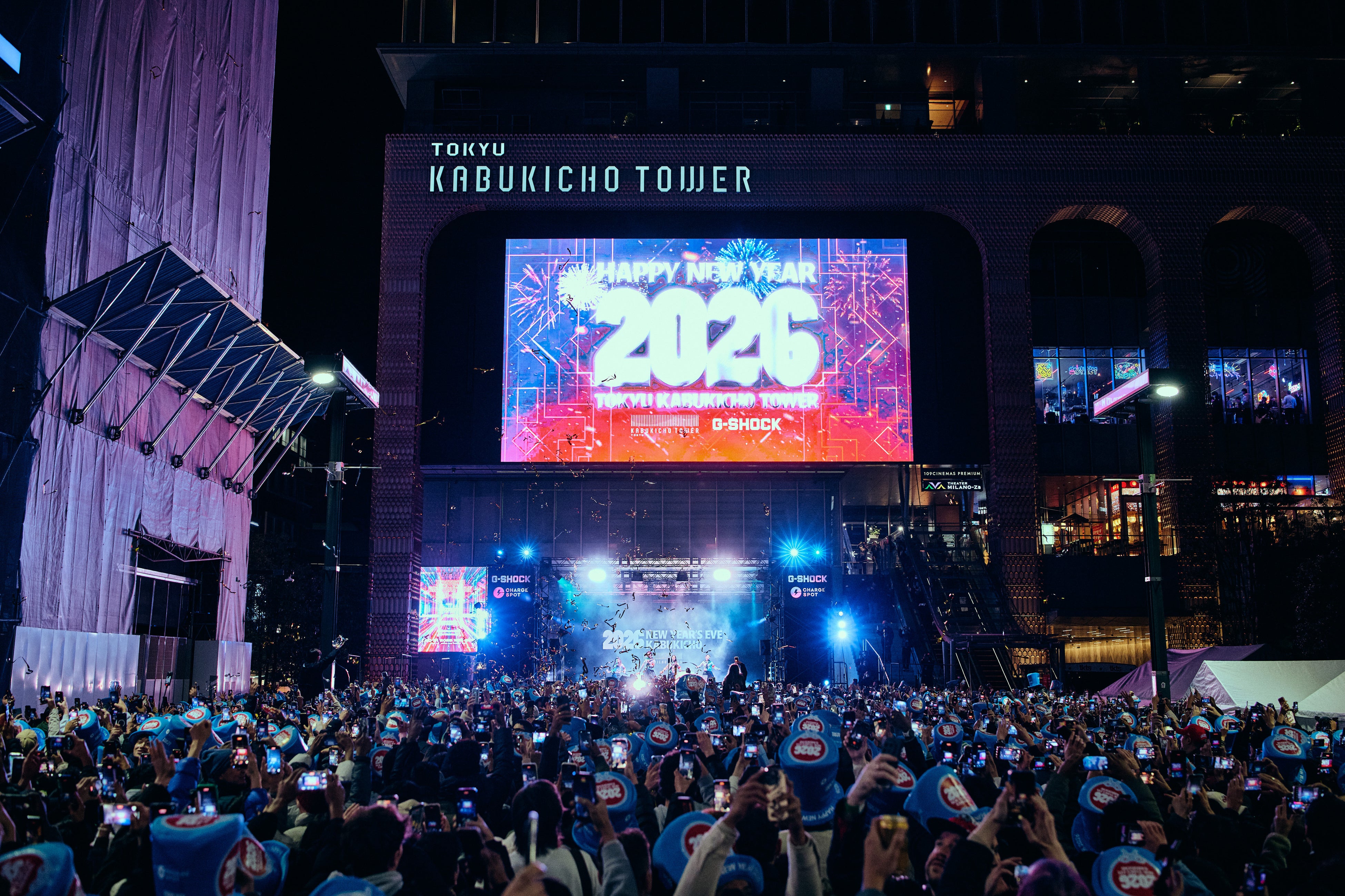 本施設は、2025年12月31日~2026年1月1日にかけて、カウントダウンイベント「2026 NEW YEAR’S EVE KABUKICHO」(以下、本イベント)を開催。本施設と隣接する歌舞伎町シネシティ広場では、昨年に引き続き、屋外ビジョンでのカウントダウン演出を実施しました。本年は、G-SHOCKを象徴する5600シリーズをフューチャーした映像で「5、4、3、2、1、Happy New Year!」と、国内外問わず広場に集まった約6,000人の一体感のある声とともに、歌舞伎町らしい新年を迎えました。