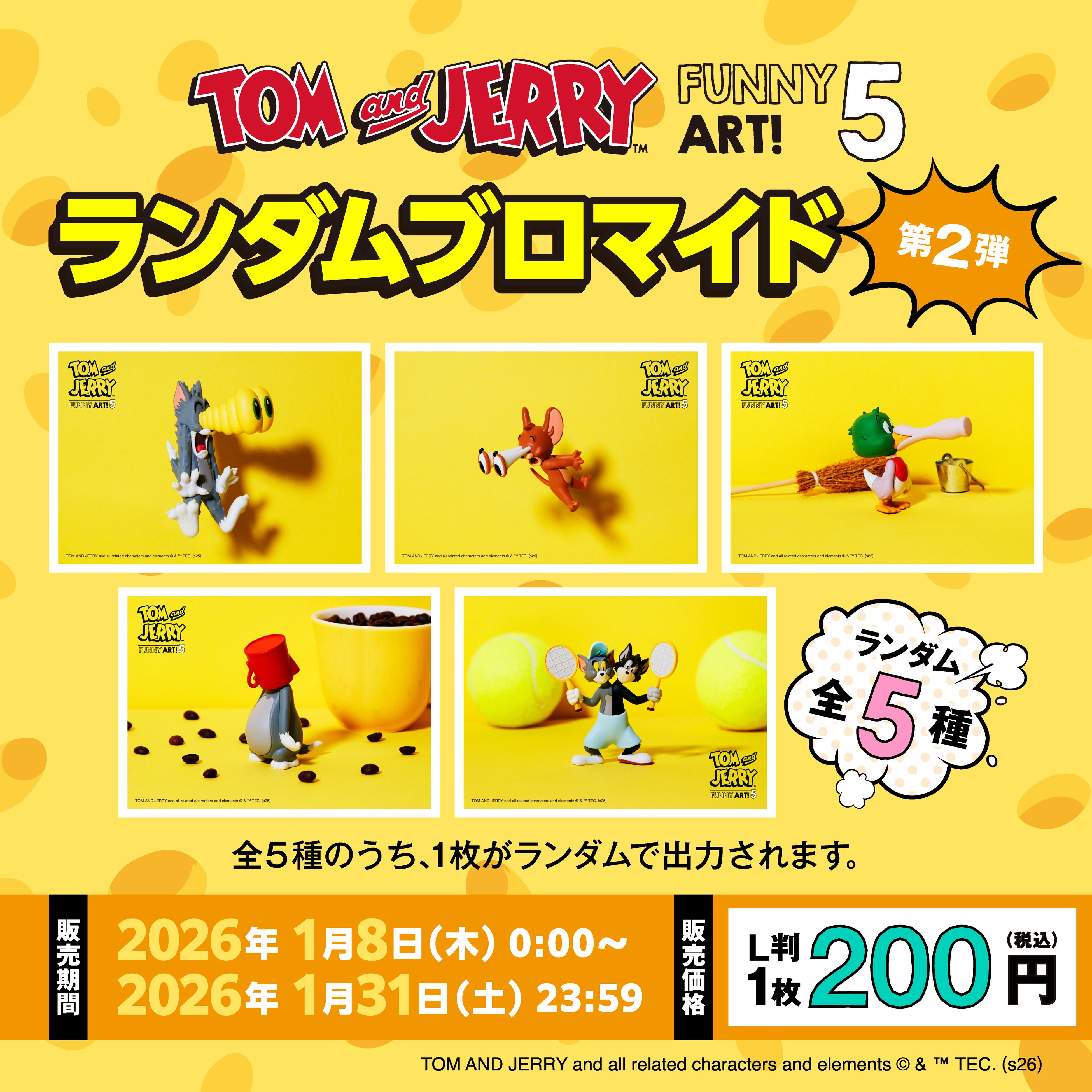株式会社サニーサイドアップが手掛ける「Happy くじ」では、2025年12月26日(金)より、ワーナーブラザース・ディスカバリー グローバル・コンシューマープロダクツとのパートナーシップのもと、大人気アニメ作品「トムとジェリー」の限定アイテムが手に入る、Happy くじ『TOM and JERRY FUNNY ART!』5 を、セブン-イレブン、イトーヨーカドー、ゆめタウンにて販売中です。