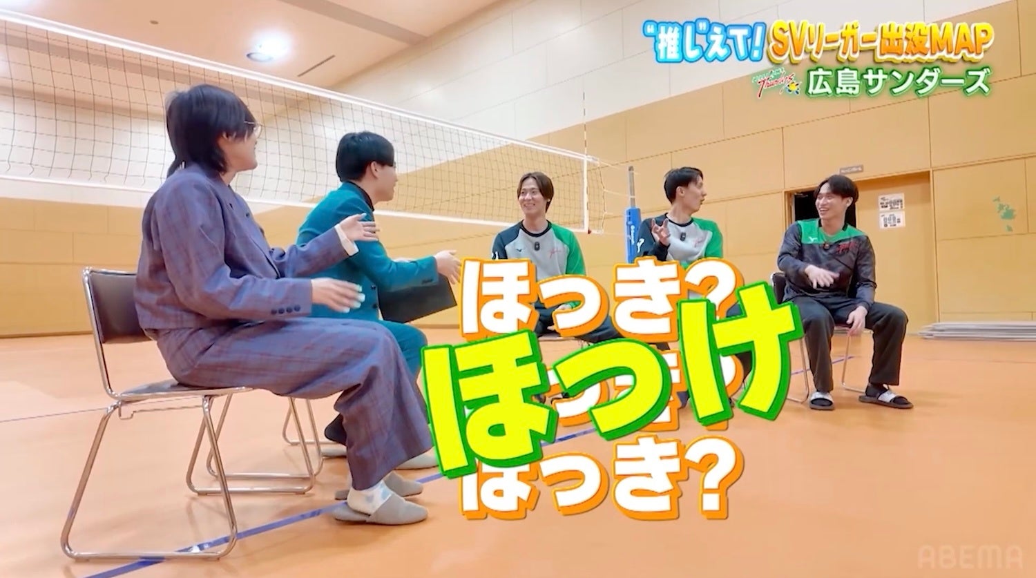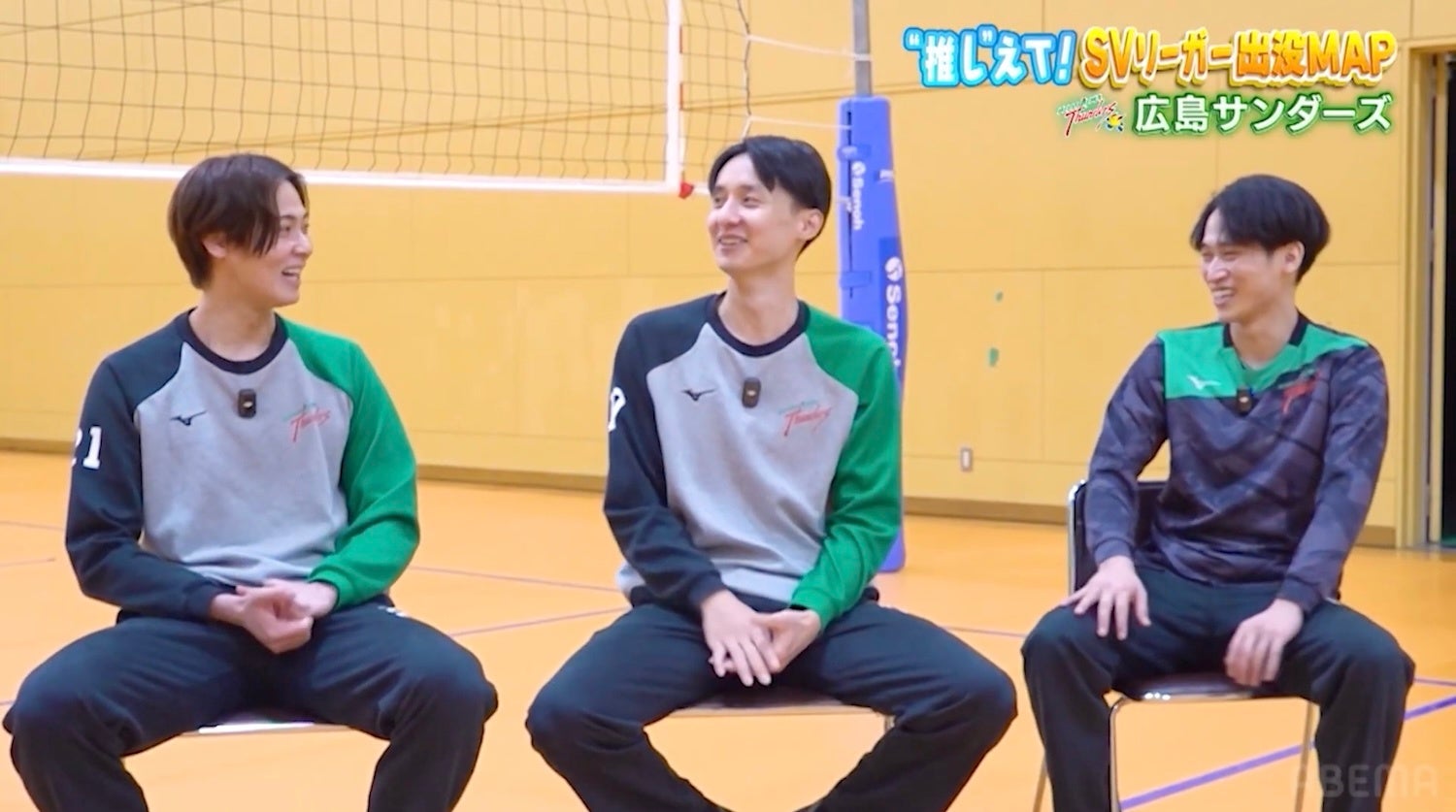 新しい未来のテレビ「ABEMA(アベマ)」は、2025年12月27日(土)に『SVリーガー出没MAP〜広島サンダーズ・永露元稀選手〜』を配信いたしました。お笑いコンビ・翠星チークダンスがMCを務め、広島サンダーズに所属する永露元稀選手、金子聖輝選手、髙木啓士郎選手が出演しました。