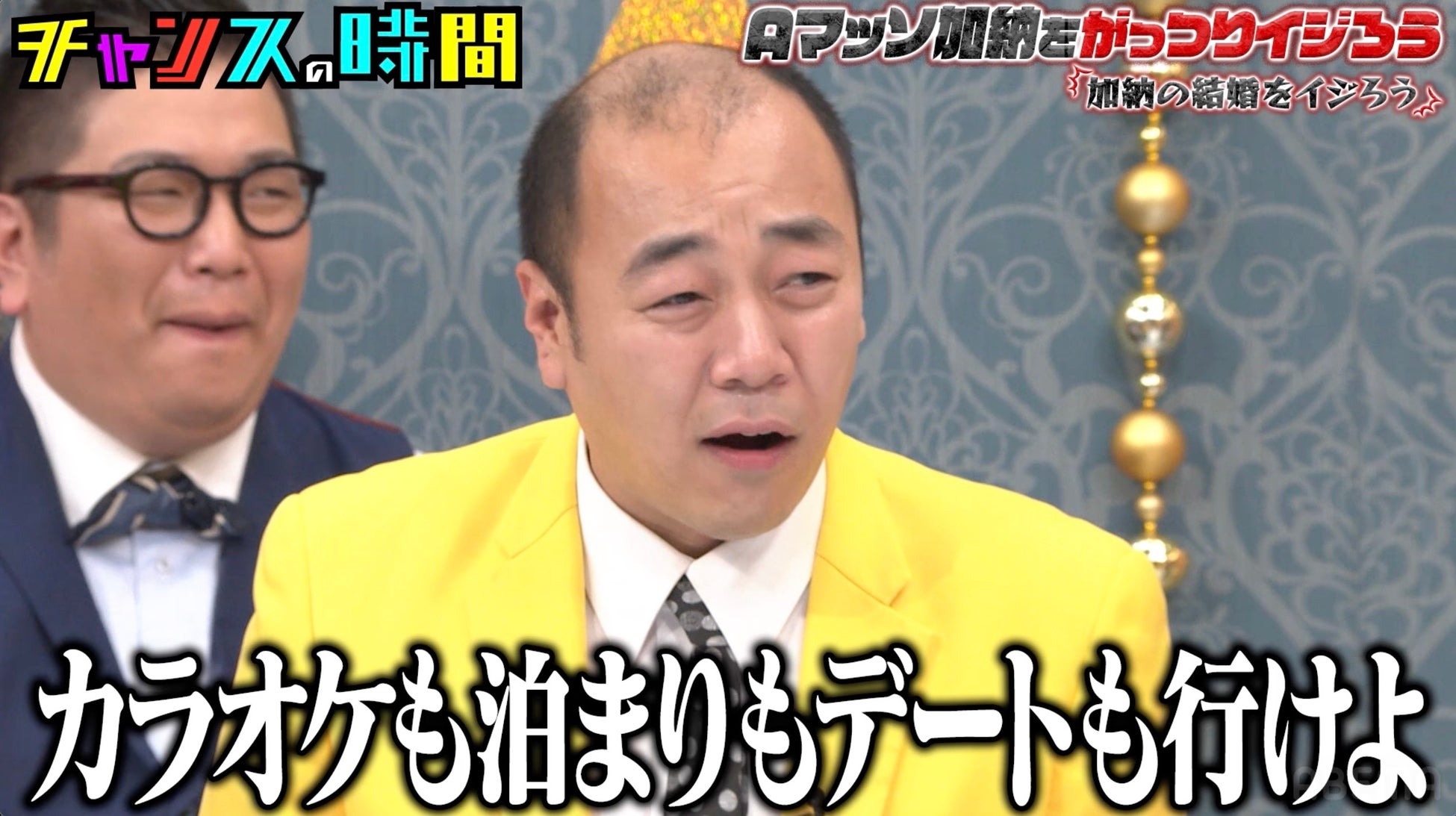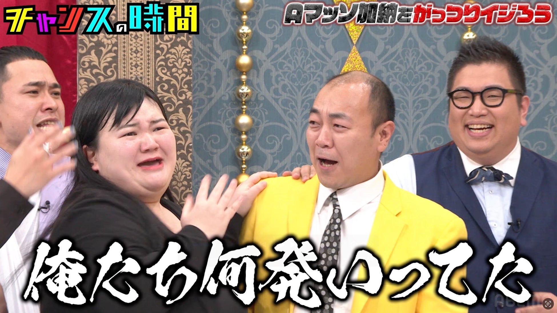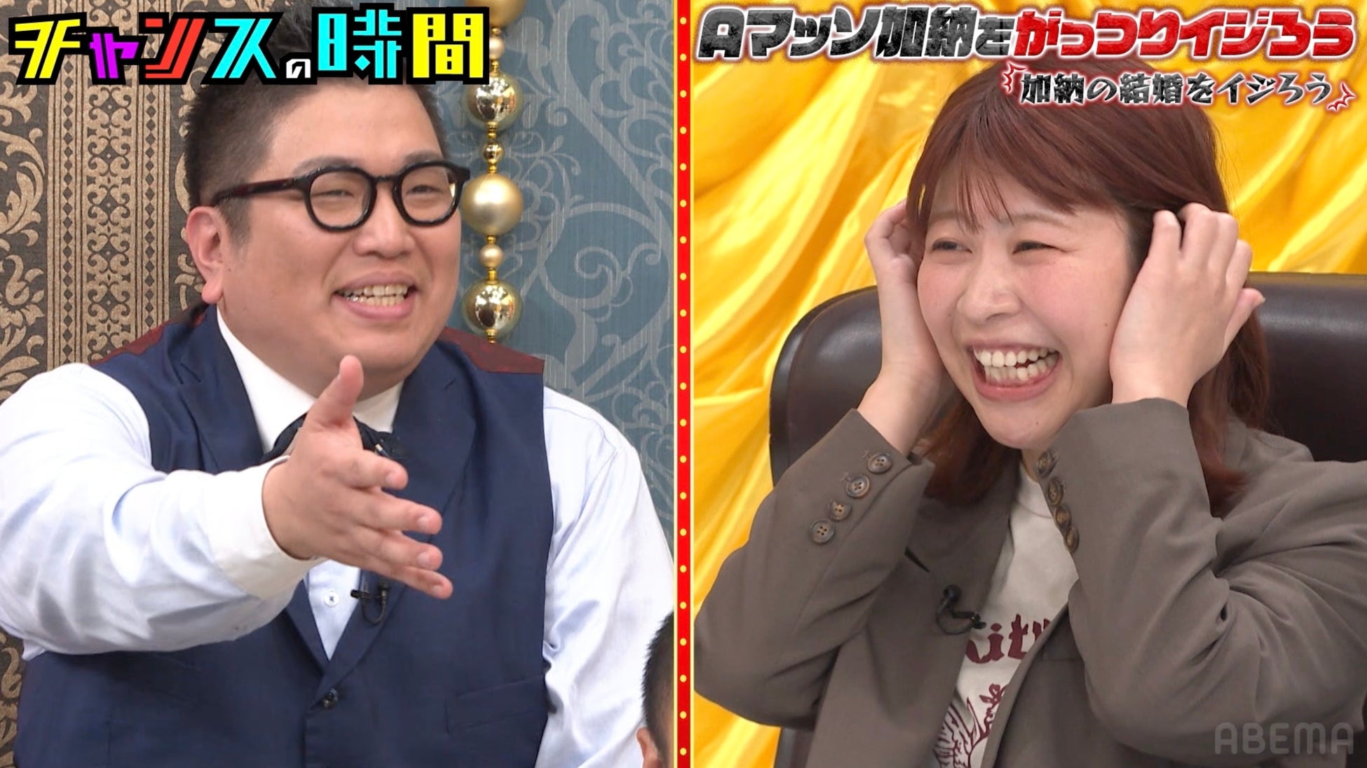 Aマッソ・加納、後輩たちにイジられて“バンドマンと結婚”をついに語る「ど真ん中行くんですね」芸人一同驚きの新事実が続々判明!禁断の“Aマッソ・加納イジり”に挑む!|『チャンスの時間』無料見逃し配信中