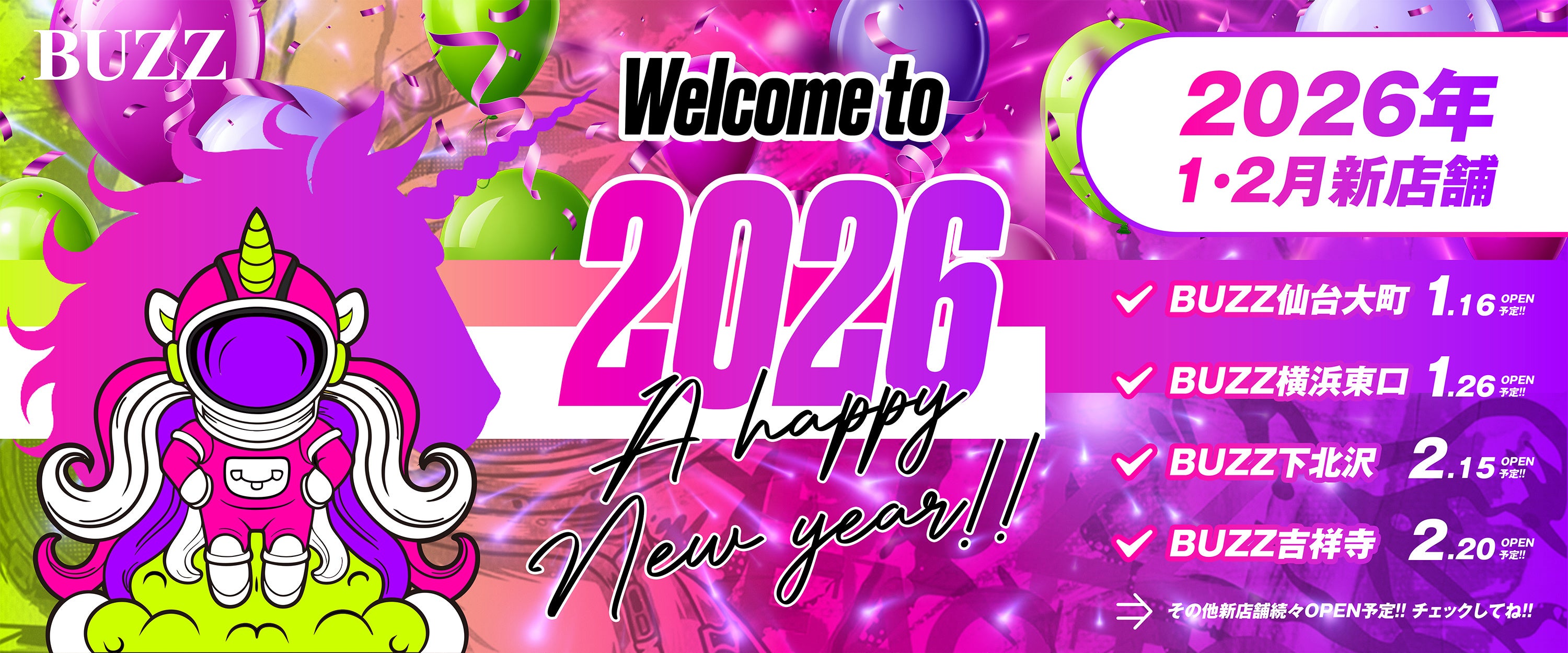 STUDIO BUZZは2026年、名古エリアへなど初進出を含む7店舗の新規出店を予定しています。