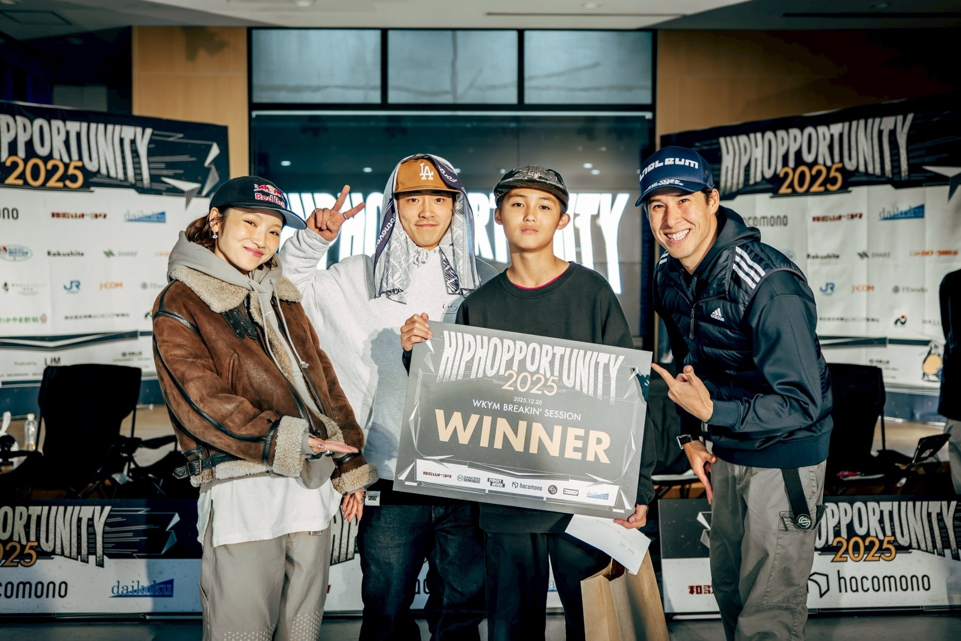 本イベントでは、勝敗や順位だけでなく、即興性・共創力・振る舞いといった「ヒップホップの本質」そのものが評価されました。ここに並ぶプレイヤーたちは、単なる大会の勝者ではありません。世代やジャンル、初対面の相手と向き合い、その場で関係性を育み、空間をグルーヴさせた存在です。