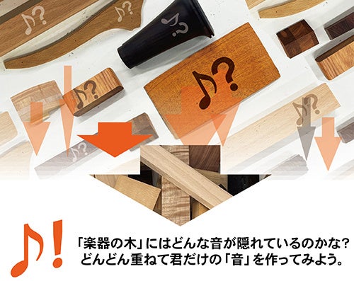 楽器の木材などいろいろな素材を使って音を鳴らし、その場でレコーディングして“自分だけの音楽”を仕立てる体験ワークショップです。思いついたアイデアをそのまま音にしてみる、創作の楽しさをどなたでも手軽に味わうことができます。
