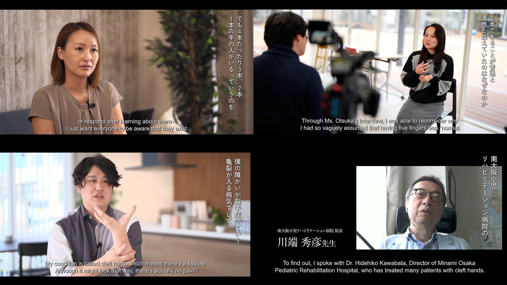 生成AIの現場ではよく5本指にならないトピックスが話題になります。エンジニアは、5本指にならない指を5本指にするために大量のGPUや電気代を使ったりしますが、果たしてその行為はただのエラー修正、と記述して良いものなのか?「そこには排斥されているマイノリティの暮らしがあるのではないか。」窪田はそう考え、生まれつき5本指ではなく暮らす裂手症の当事者やご家族、医療従事者の方々に話を伺い、ドキュメンタリー形式の映像作品を制作しました。
