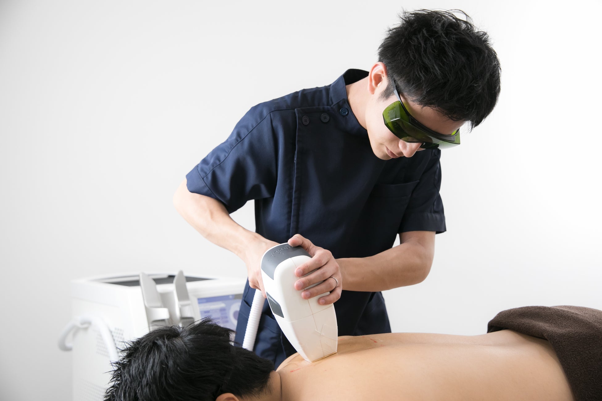 多くは厚生労働省より認可を受けた『医療用レーザー脱毛機』を使用しており、レーザーによって毛根組織を破壊することで生えてくる毛を確実に減らすため、効果が確実な脱毛方法です。「毛根組織を破壊する」ことは医療行為にあたるため、本来「脱毛」は医療機関のみで許されています。