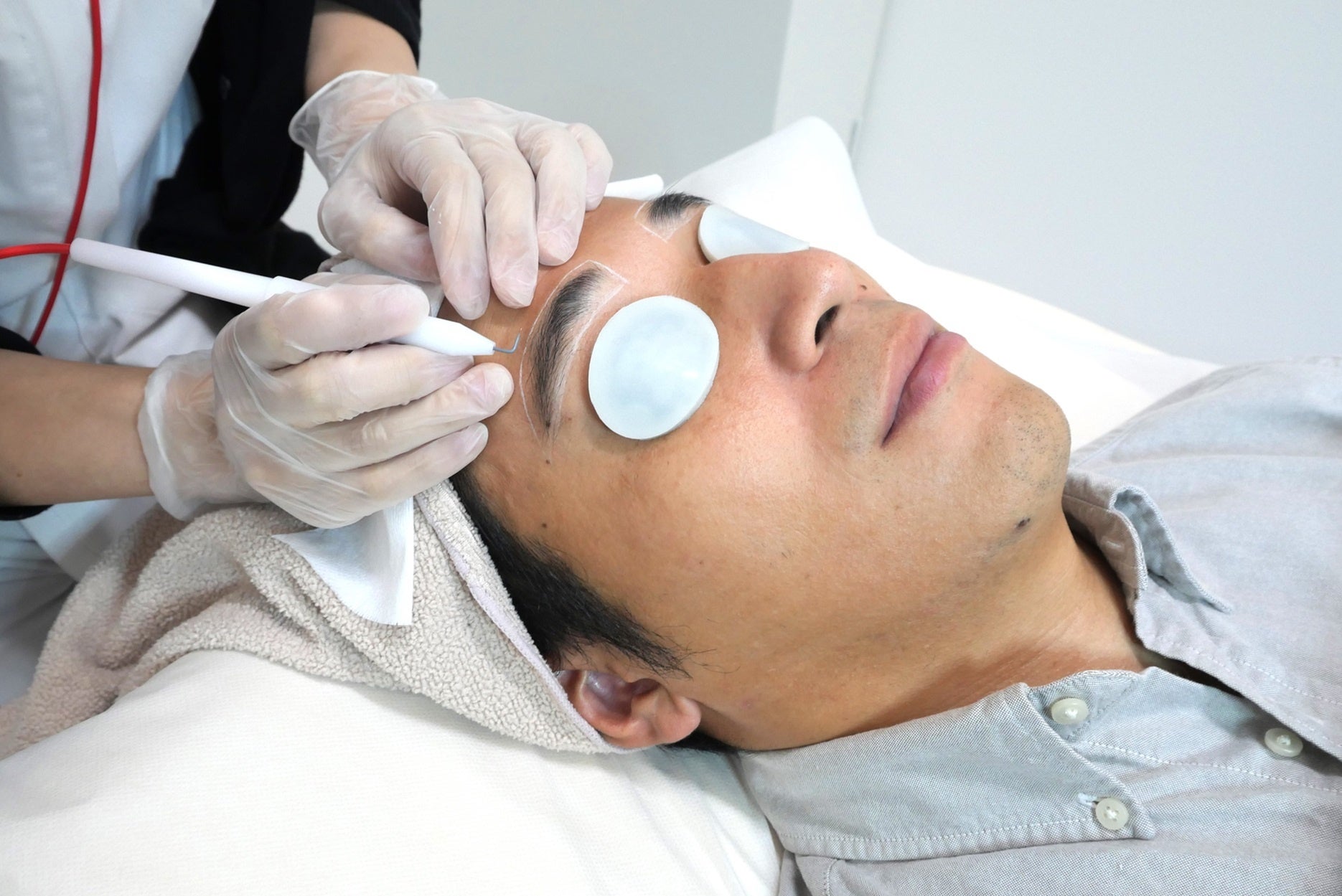 山内さんが見守る中、濱家さんが初のニードル脱毛(眉回り)に挑戦!