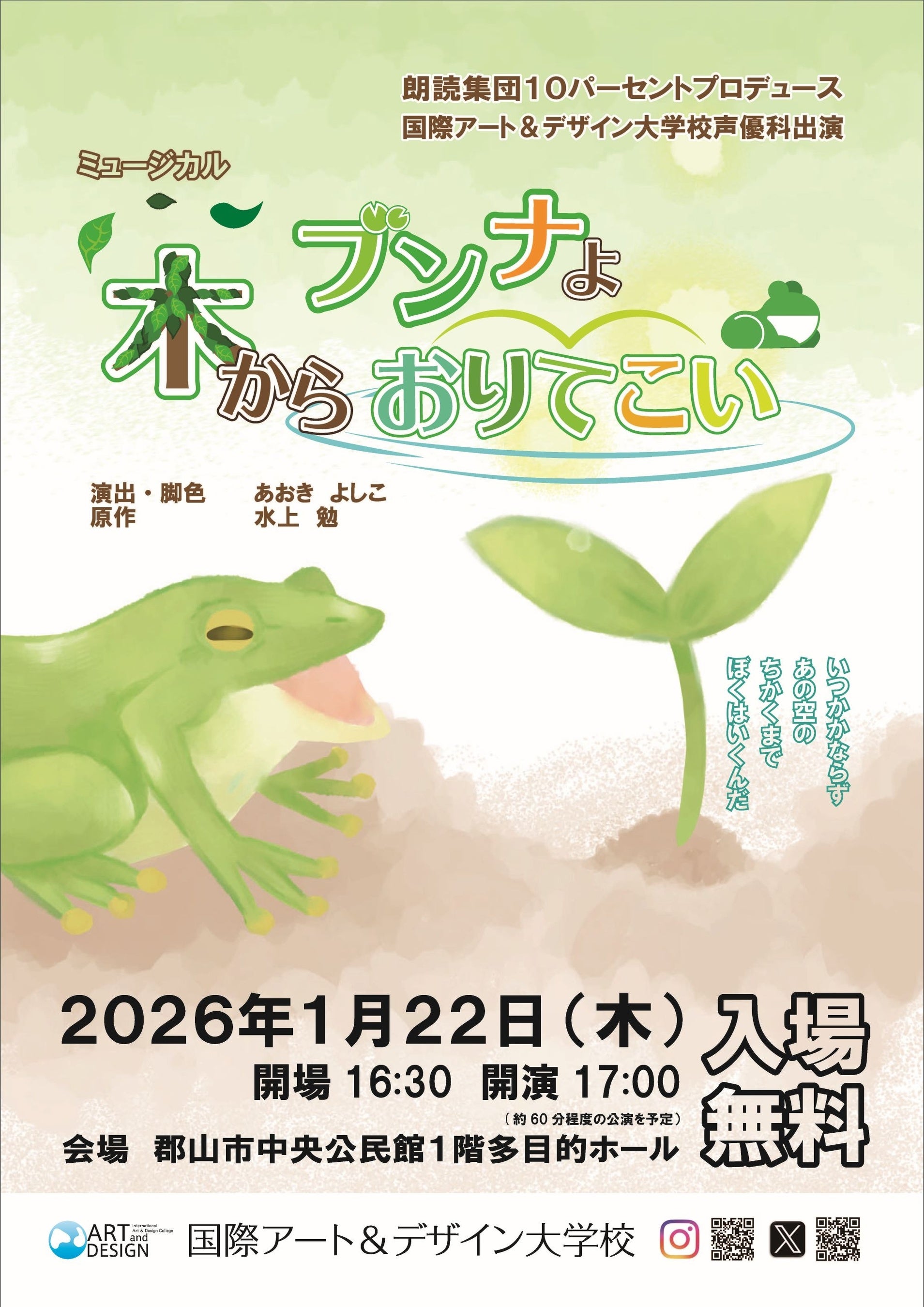 国際アート&デザイン大学校 声優科卒業・修了公演『ブンナよ!木からおりてこい』開催のご案内