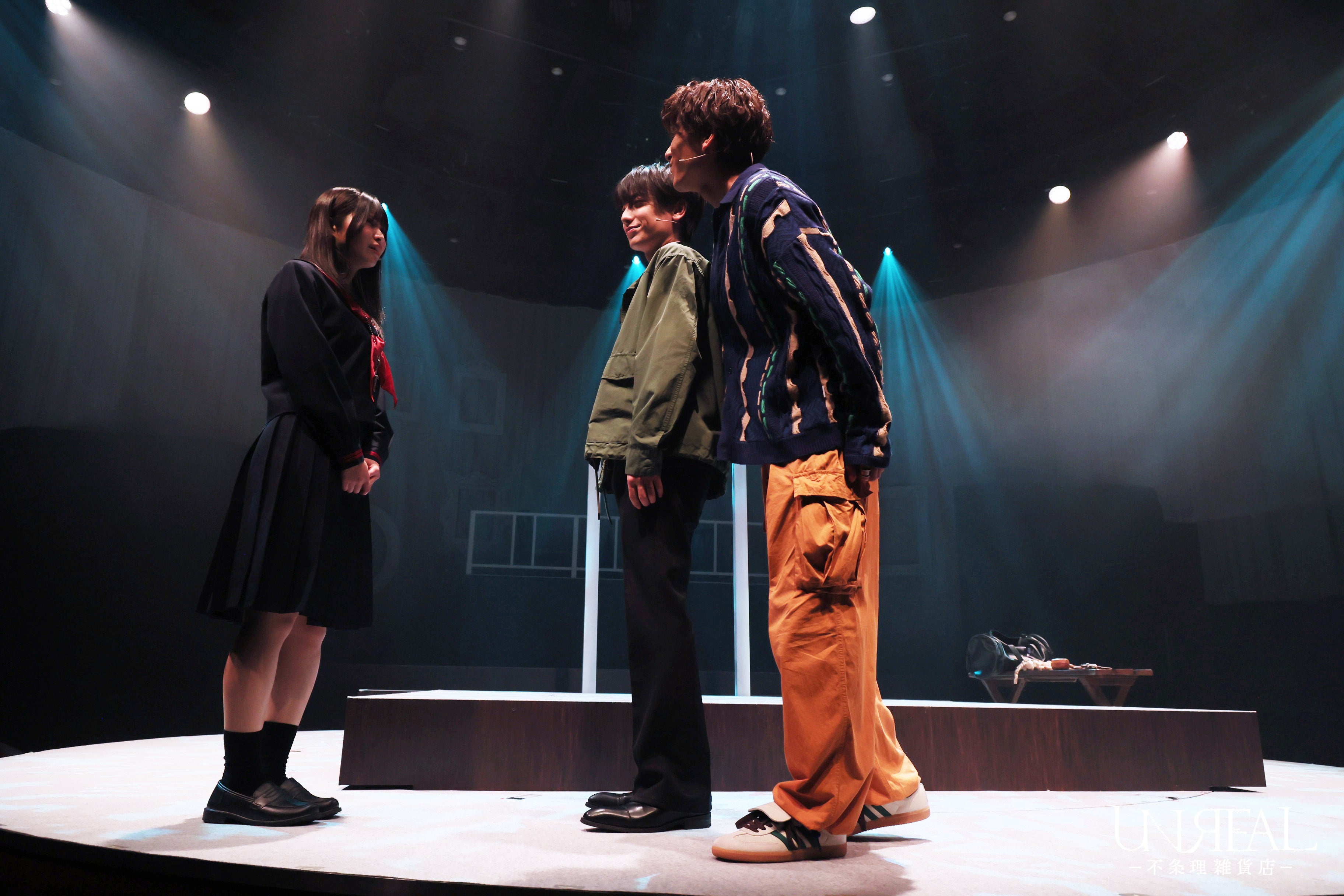 細貝「1ヶ月ちょっとの稽古を重ねて、今回の舞台版ということで、原作とはまた違う「UNREAL」の完結編を皆様にお観せできるということを嬉しく思います。初めて観られる皆様も、もちろん楽しんでいただけますし、この空間を一緒に共有できることを嬉しく思います」