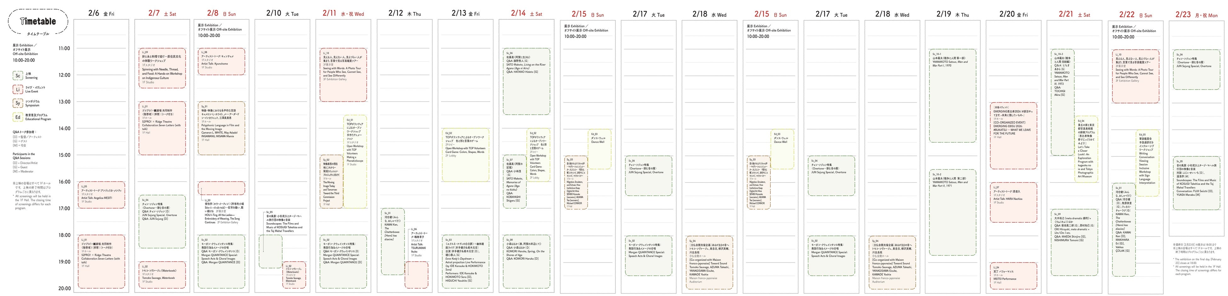 上映、ライヴ・イヴェント、シンポジウム、教育普及プログラム
