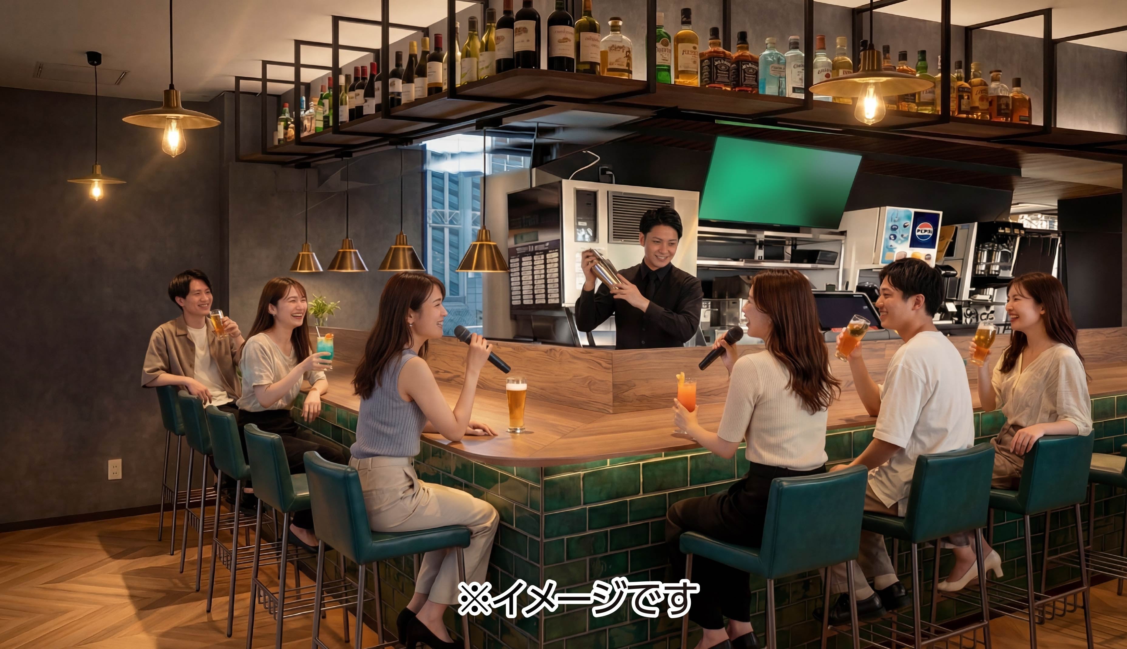 オープンカウンター「KARAOKE BAL OHASHI」は、個室を飛び出し、初対面のお客様同士でもカラオケを通じて気軽にコミュニケーションが楽しめる新しいスタイルの空間です。通常のカラオケルームと同じ料金でご利用いただけます。