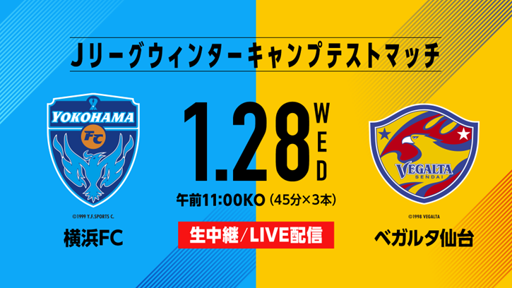 Jリーグウィンターキャンプテストマッチ「横浜FC×ベガルタ仙台」1月28日(水)に生放送、LIVE配信!