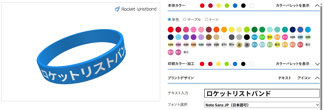 シミュレーターが対応するのは、ロケットリストバンドの主力商品であるシリコンリストバンド(ラバーバンド)のデザイン。