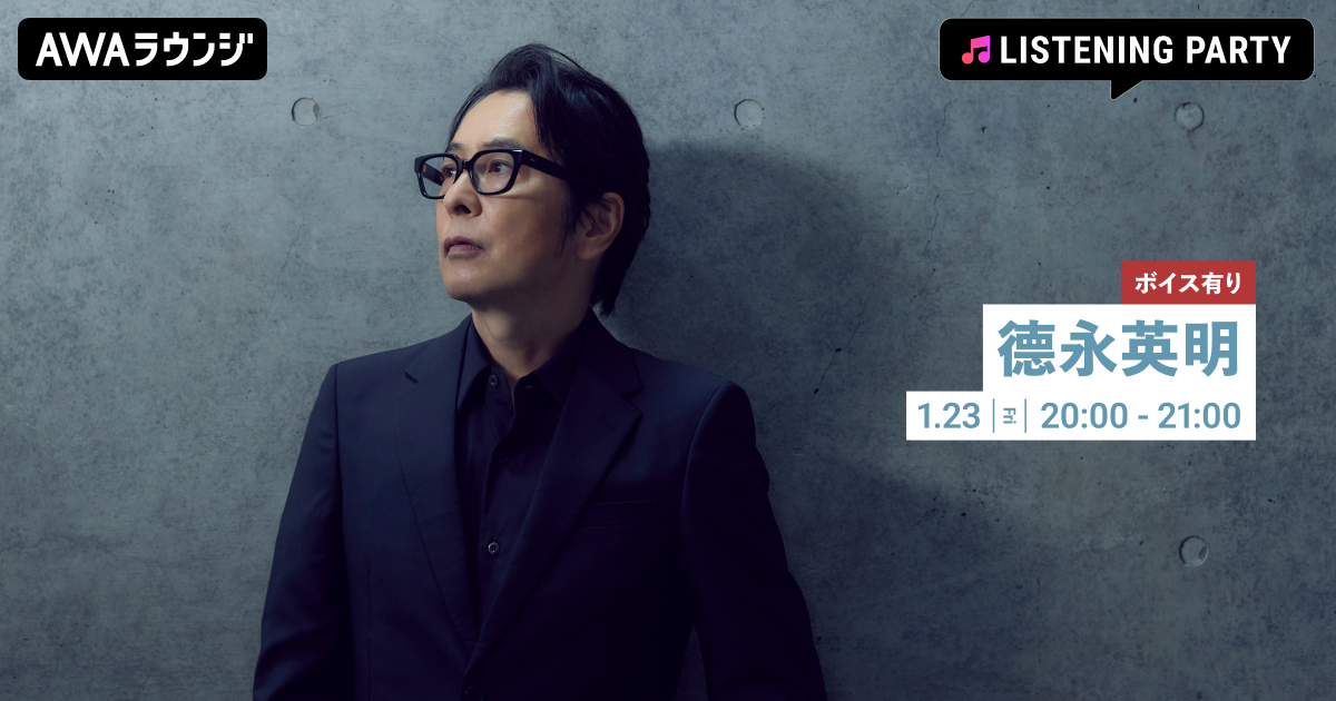 AWA株式会社(本社:東京都港区、代表取締役CEO:冨樫晃己)が運営する、サブスクリプション型(定額制)音楽ストリーミングサービス「AWA(アワ)」は、2026年1月23日(金) 20:00~21:00の1時間に渡り、無料で誰でも参加できるオンライン空間「ラウンジ」で、德永英明特集のリスニングパーティーを開催いたします。