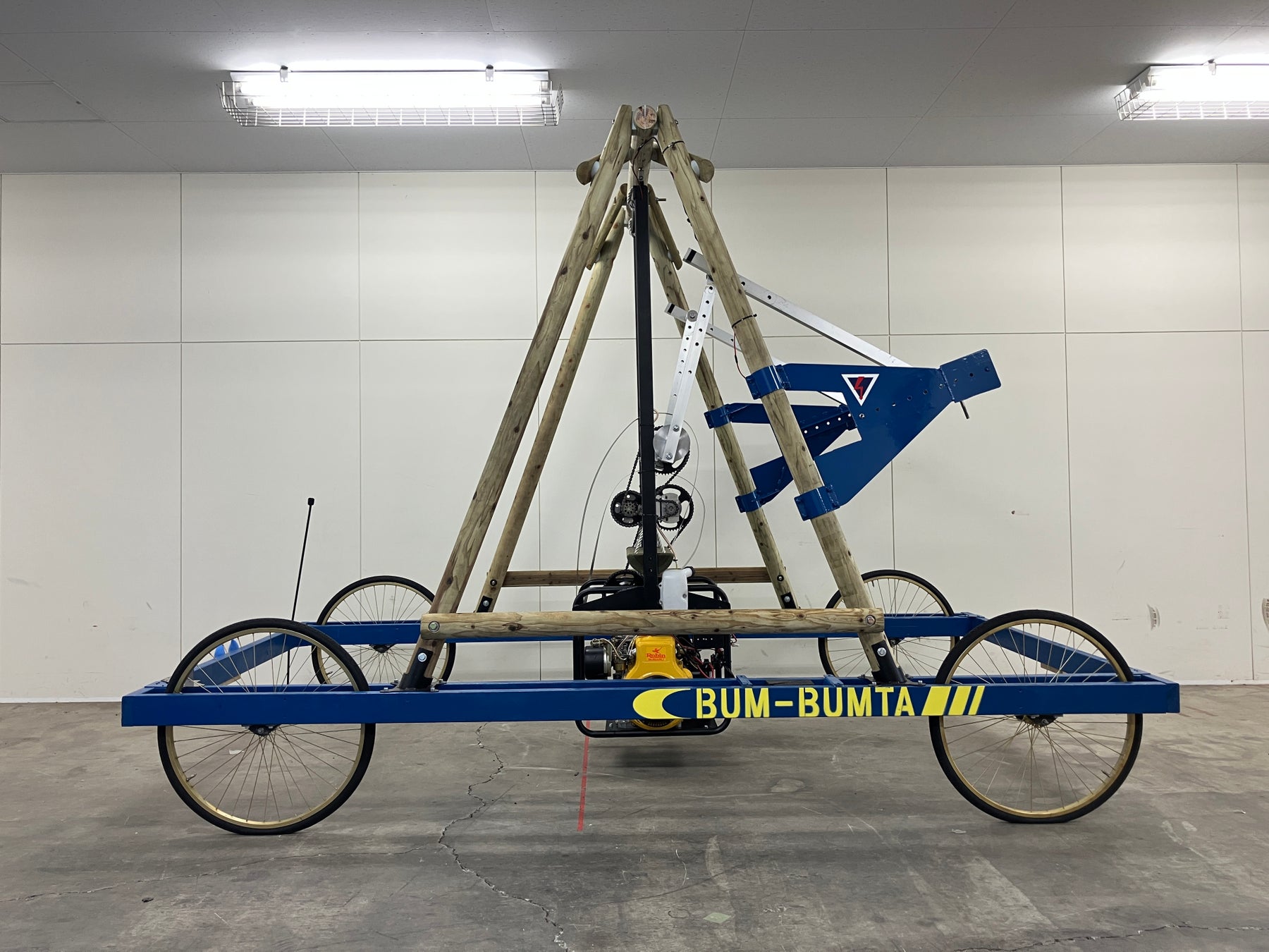 脚立でありながらもがむしゃらに走る姿はまさに爆走するモンスター。キャタツーリングを生で見るとテレビとは違う大迫力の走りを見せてくれます。飛び跳ねるほどの世界一のパワフル脚立をぜひ間近でご覧頂くと共に、トイレットペーパーの飛行機雲(コントレイル)のように飛んでいく美しい姿は一番の見どころ。計算されたセッティングから絶妙なタイミングで動いていくハラハラ感と発射する瞬間の迫力とあわせてご覧下さい!